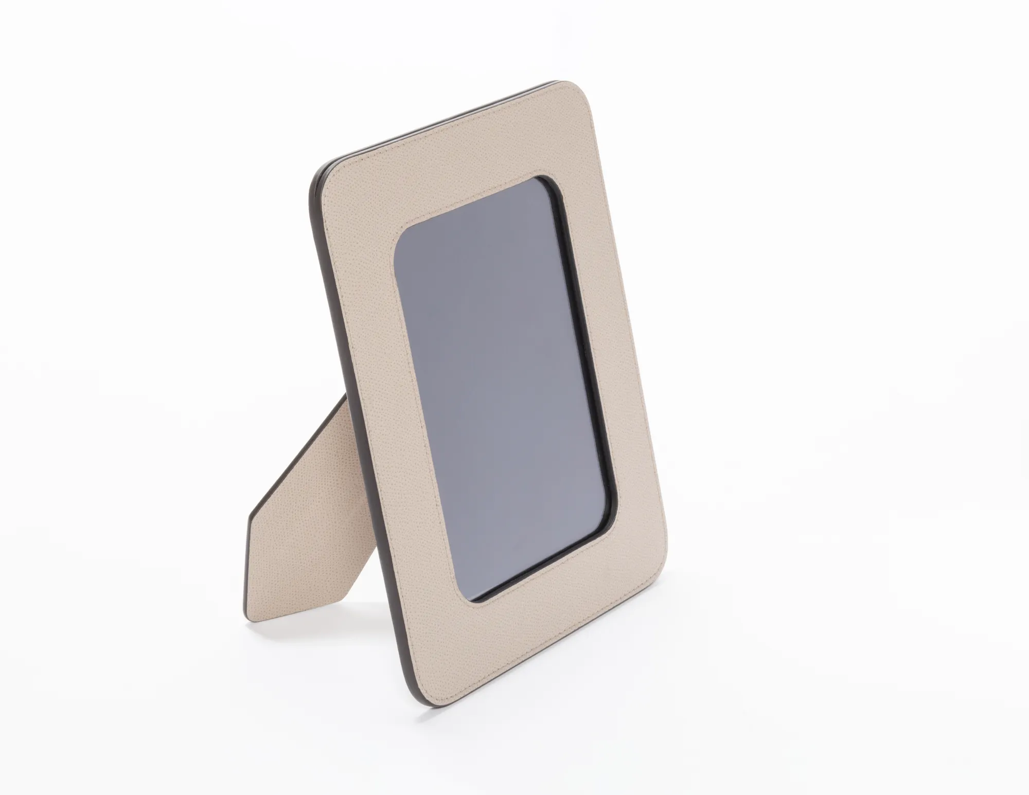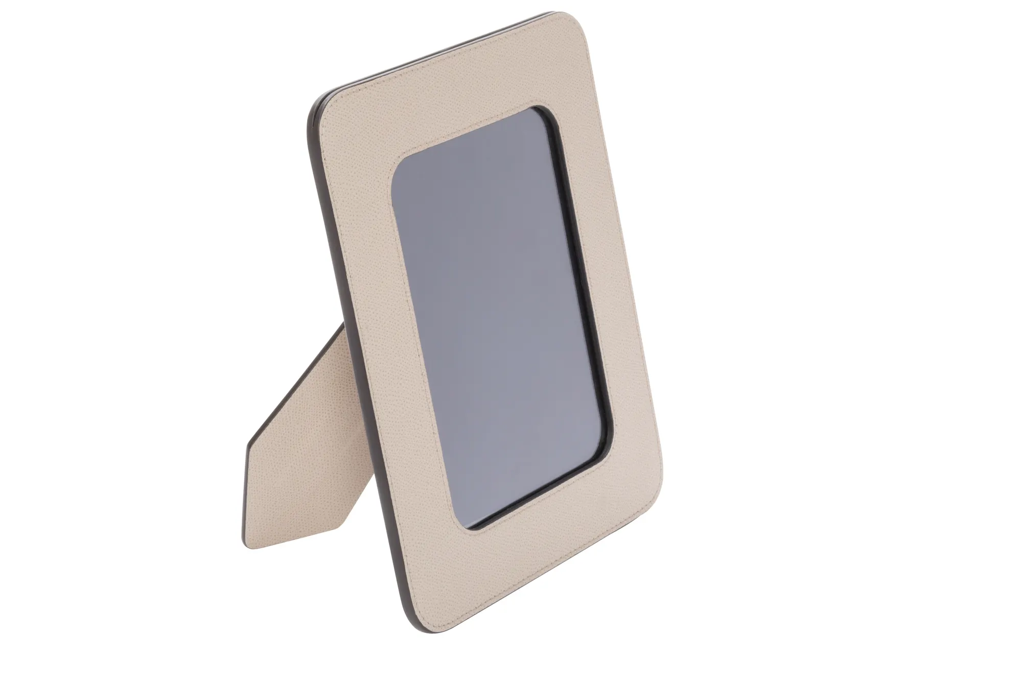 All-leather frame standing vertically (horizontal format on request). Photo protected by flexible plastic.