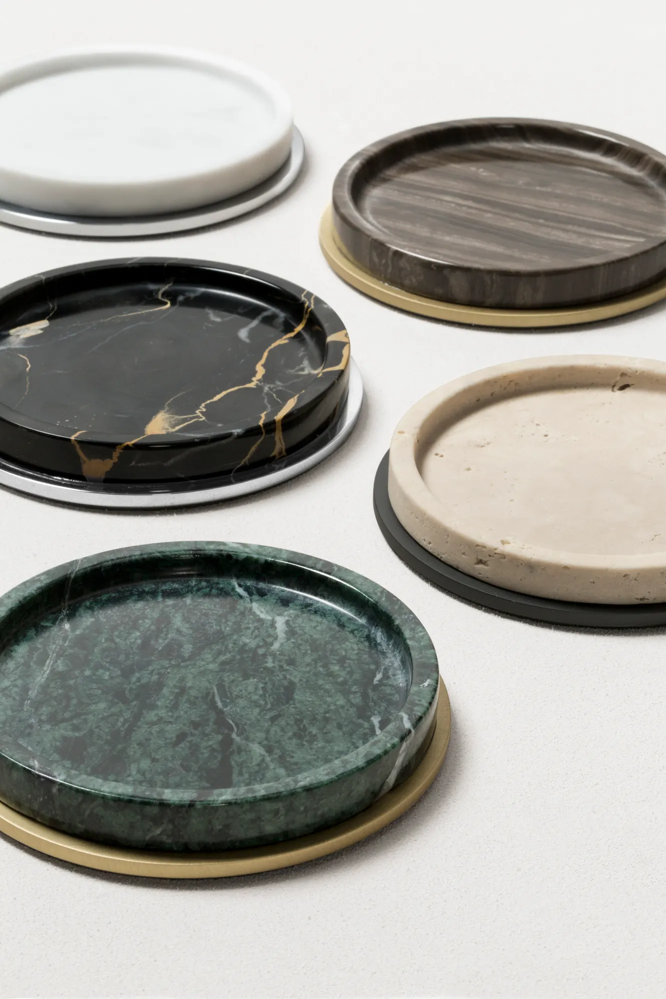 Marble structure with brass base frame. Non-slip waterproof rubber base underneath.