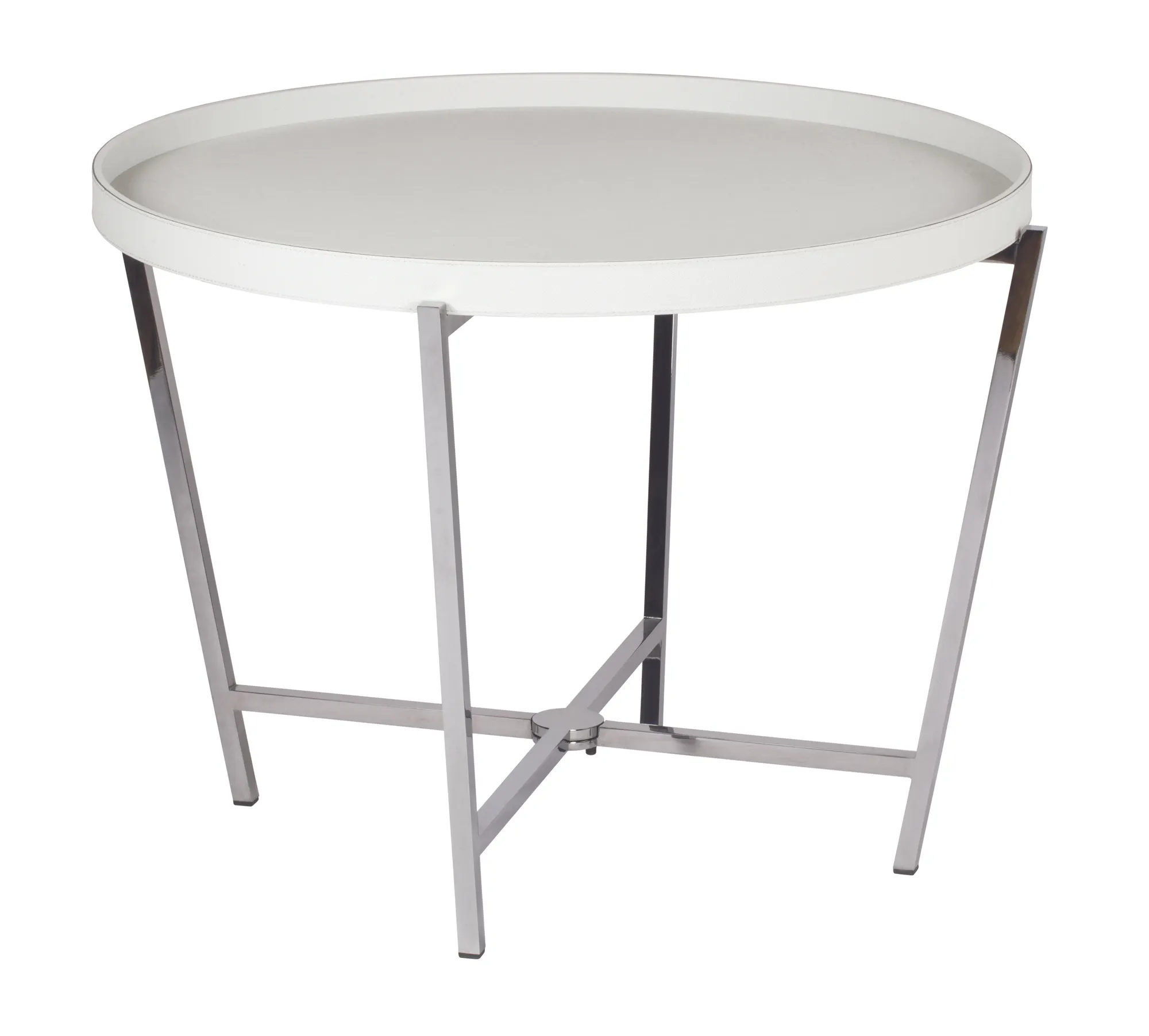 Folding metal structure available in three finishes. Removable Polo round tray on top.