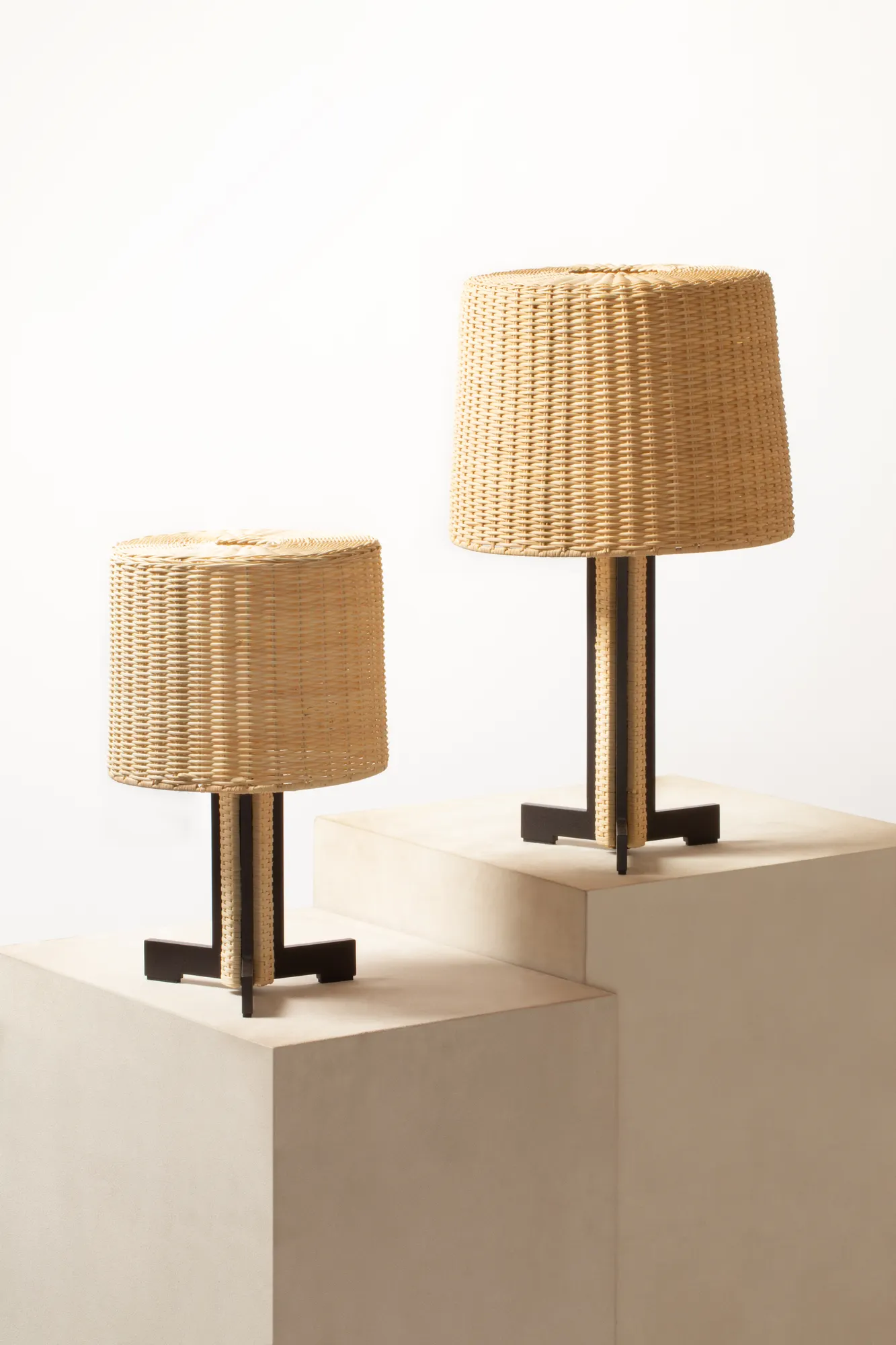 This collection reinterprets tradition with a fresh and contemporary visual language, seamlessly blending essential lines with ornate detailing. The iconic Rhapsody lamps are now declined in an exquisite version in woven rattan. Here, nature-inspired aesthetics meet modern design sensibilities. The decorative woven rattan inserts adorning the lamp's stem, together with the complementing lampshade, invite glow when illuminated and offer a delightful contrast while enhancing the visual appeal.