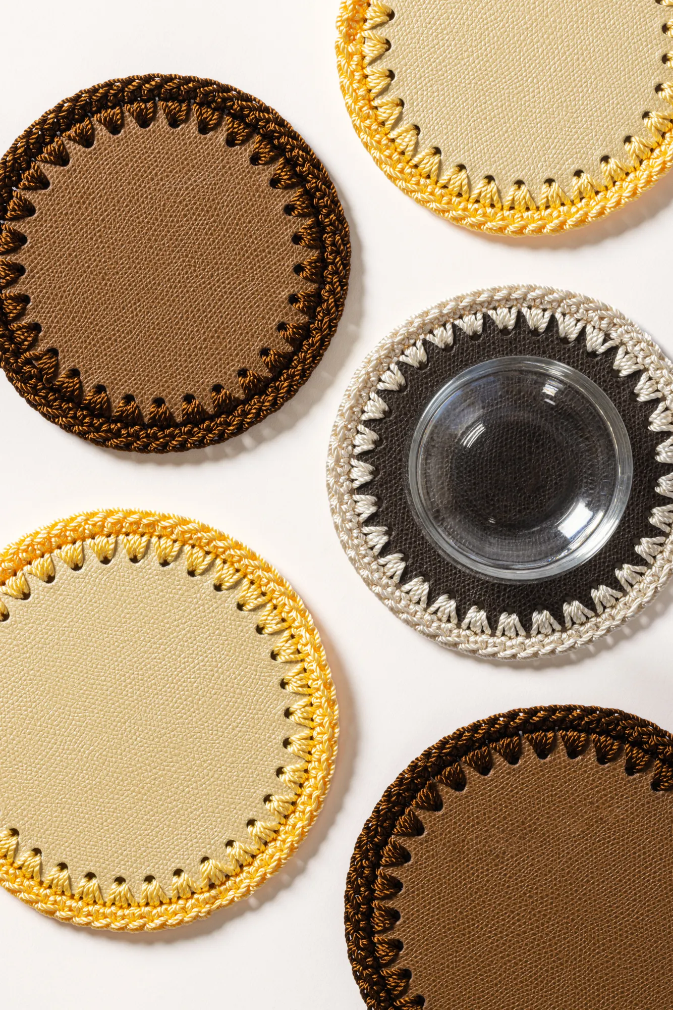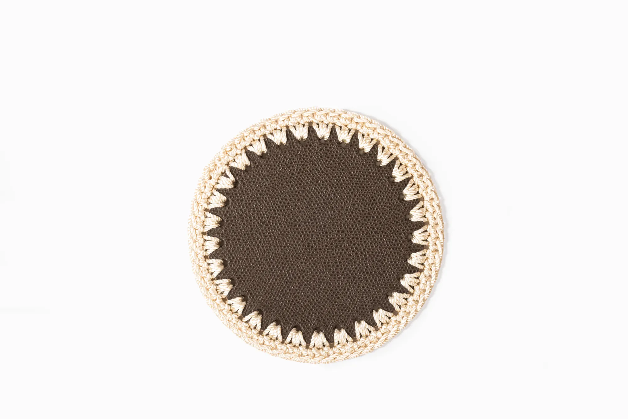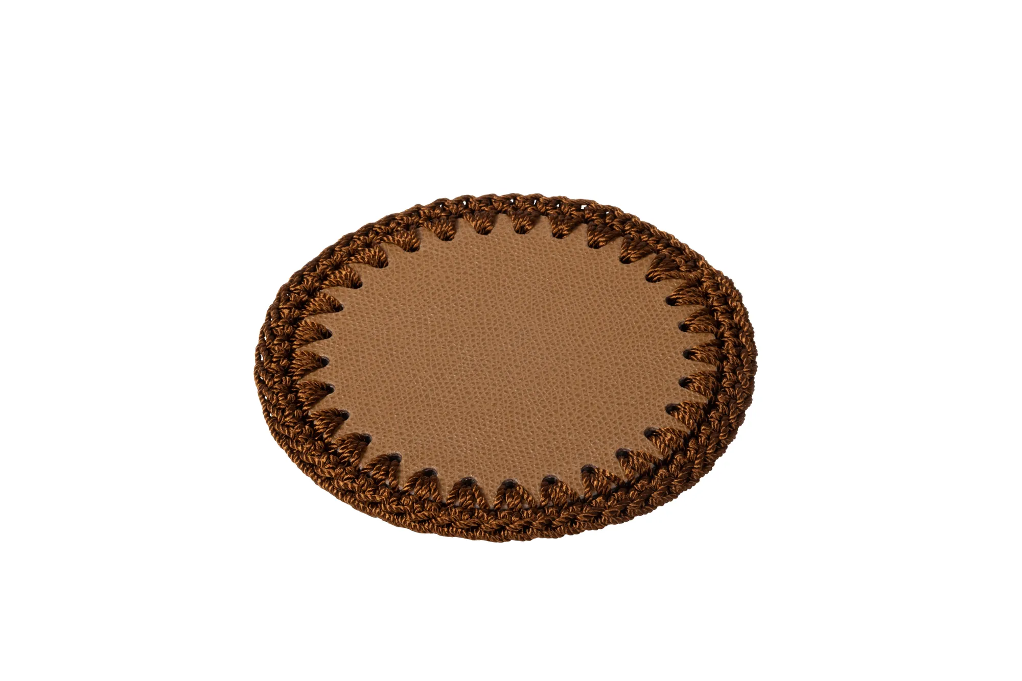 ROCHELLE LEATHER & CROCHET COASTER ROUND