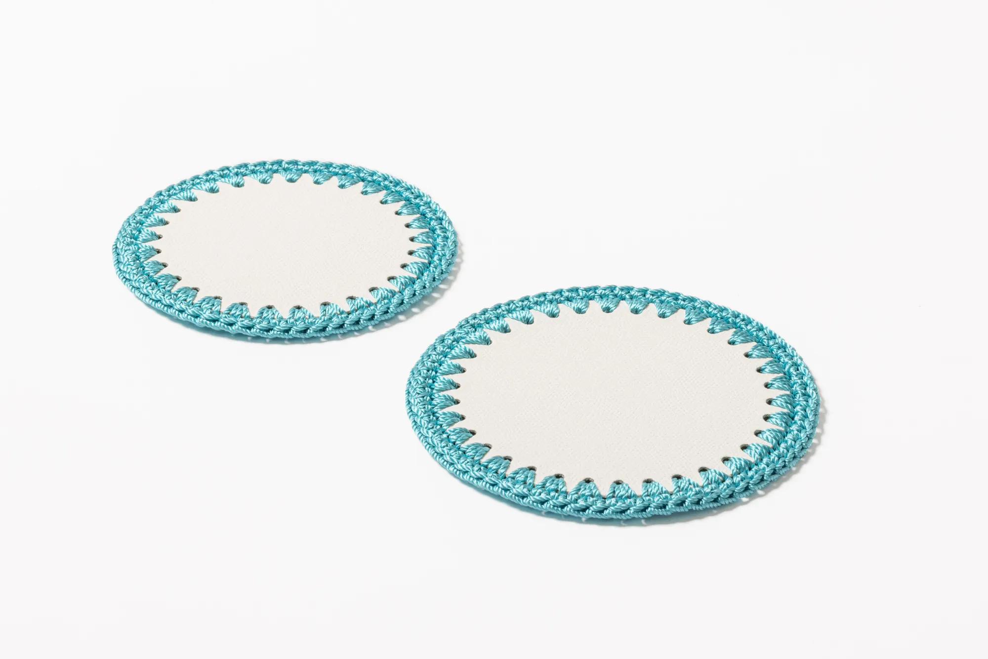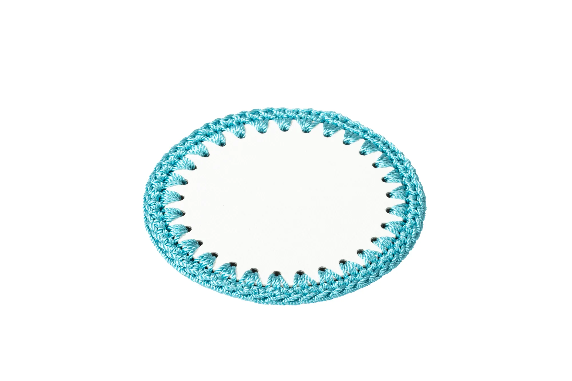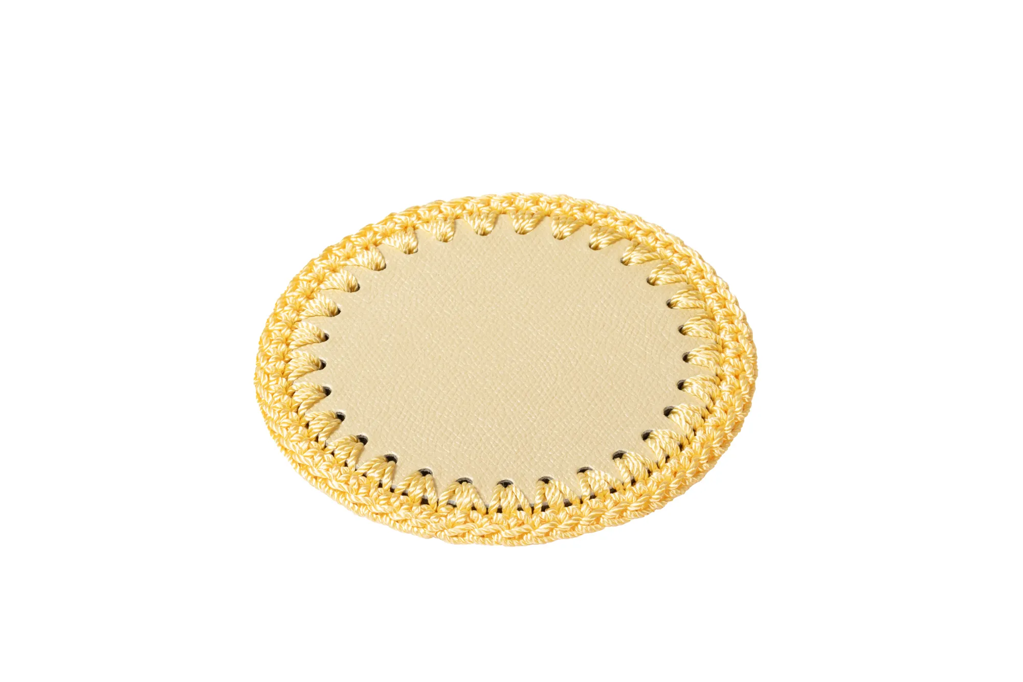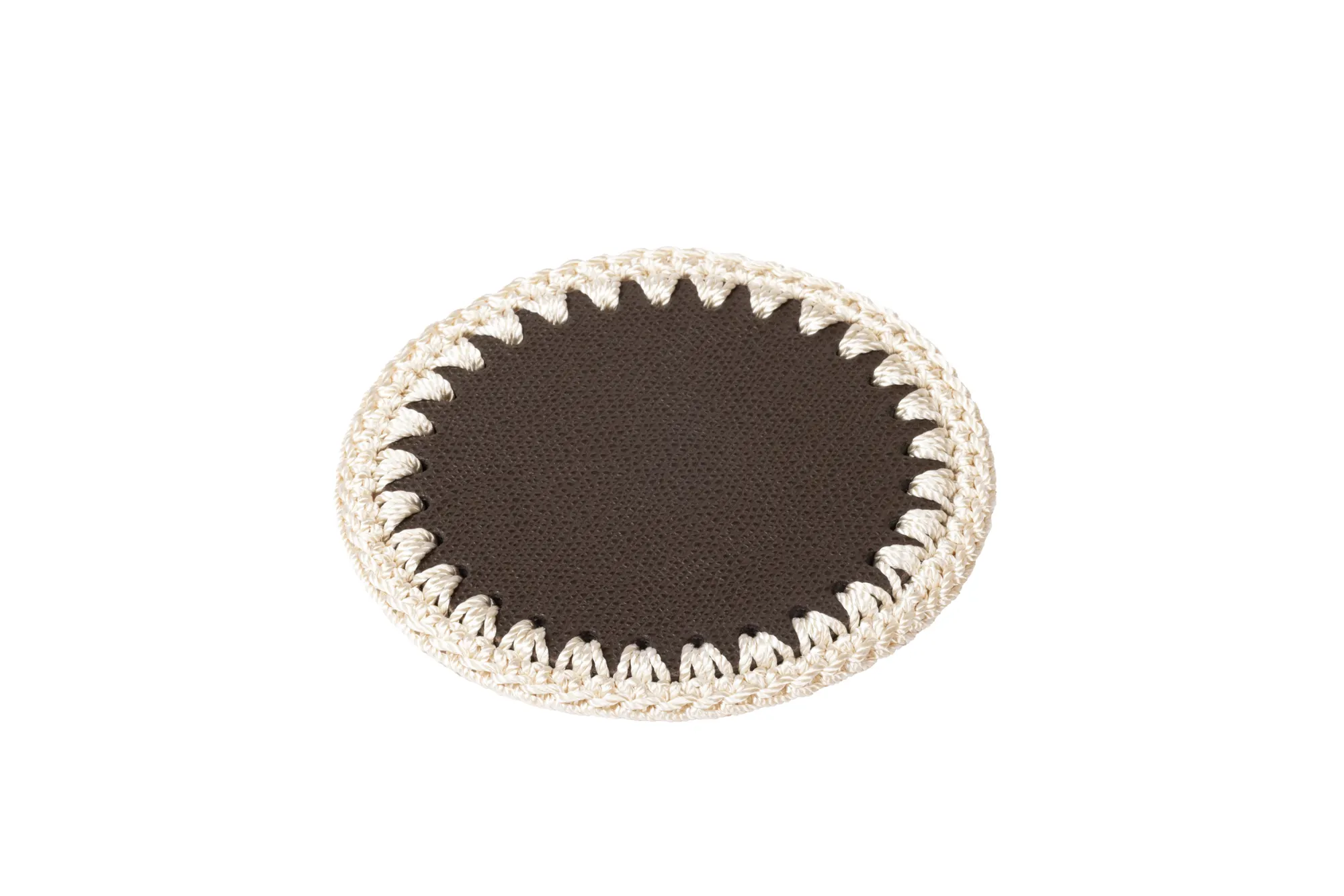 ROCHELLE LEATHER & CROCHET COASTER ROUND