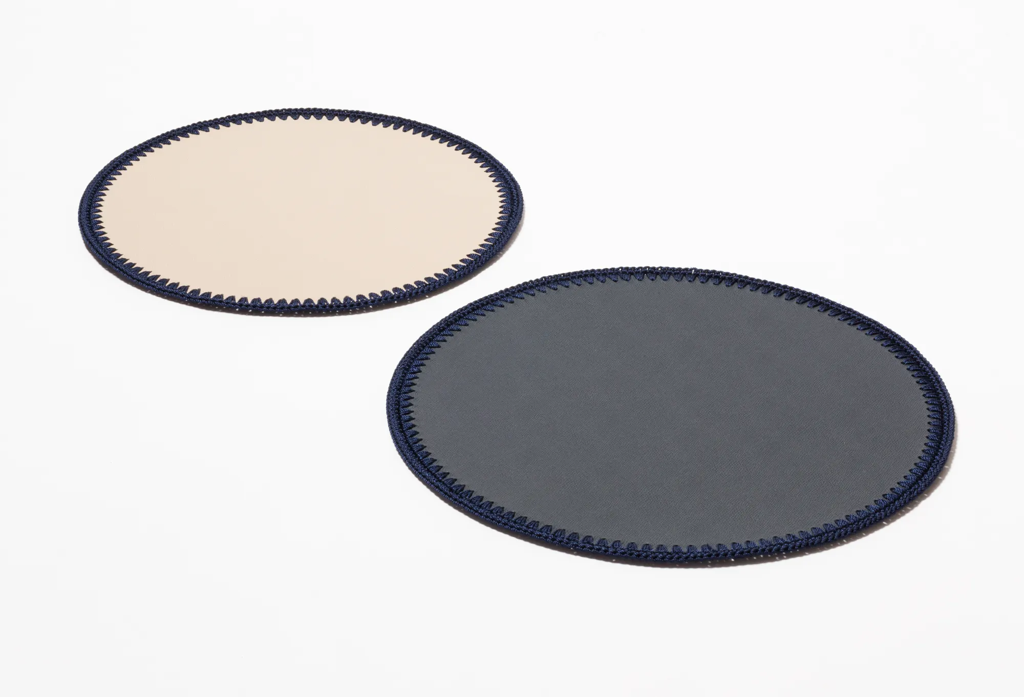 The Rochelle collection of coasters and placemats features the vibrant combination of a fine leather center and a refined hand-woven trimming edge. This collection is ideal for year-round dining indoors or outdoors and requires simple care: wipe clean with a sponge or cloth. Choose the trimming color by checking the Printed Calfskin Golf color chart at the end of the catalogue. The thread that will be applied will be the one that best matches the selected nuance.
