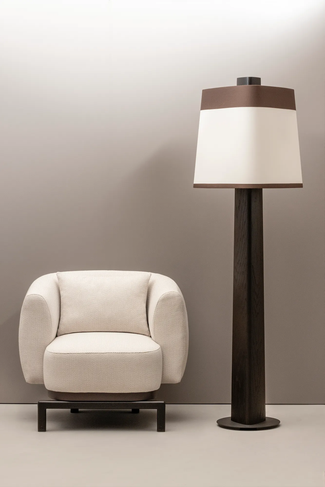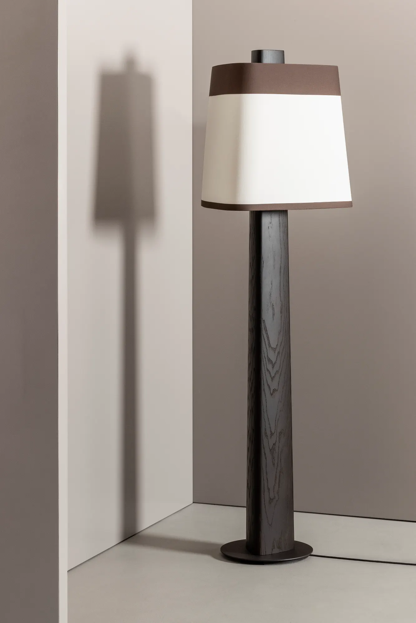 Materials: wood stem (the wood finish can be either dark-stained Canaletto walnut or wenge) and burnished bronze base. Provided with a fine cotton white lampshade. Custom sizes available on request.