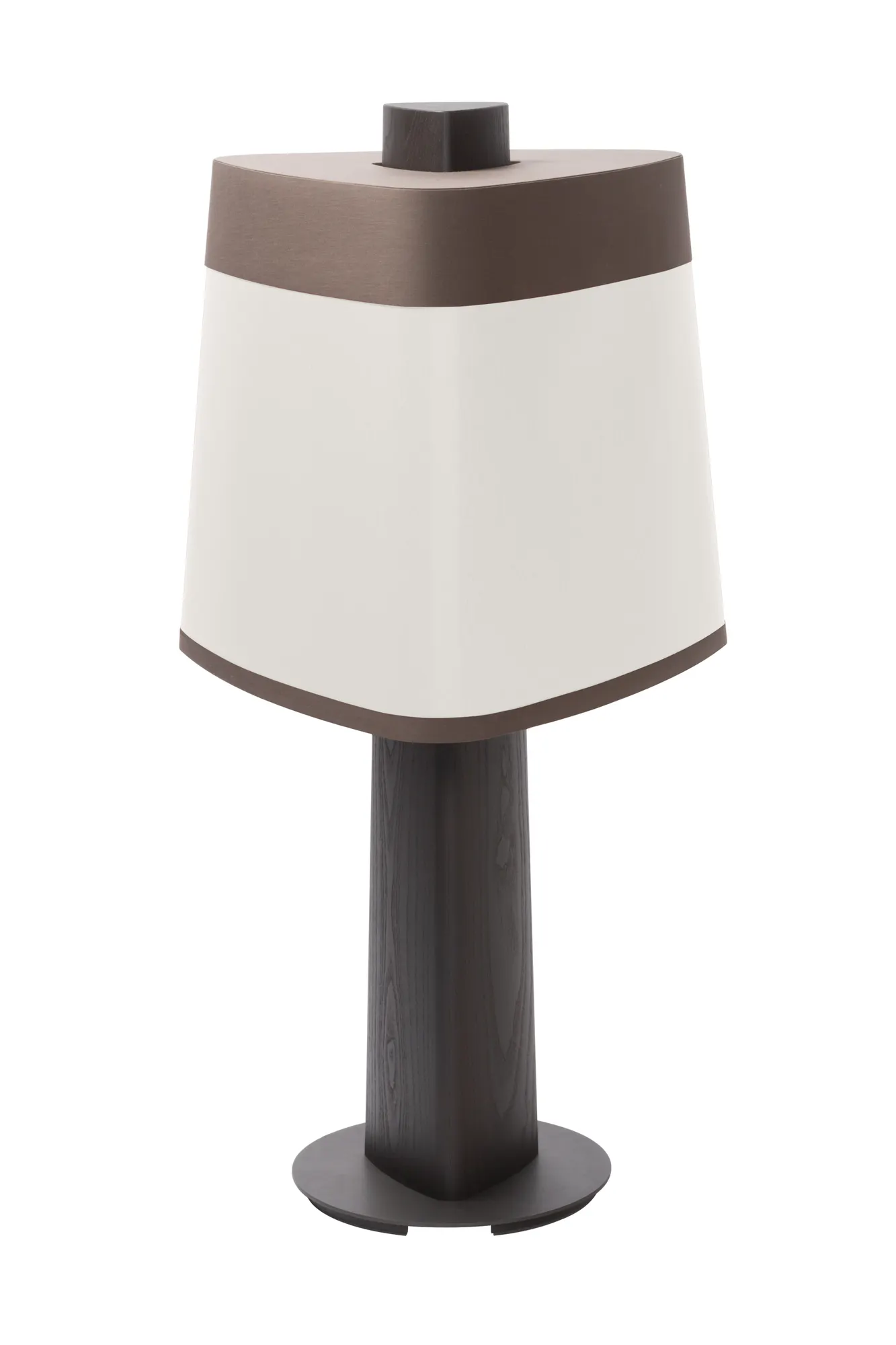 Materials: wood stem (the wood finish can be either dark-stained Canaletto walnut or wenge) and burnished bronze base. Provided with a fine cotton white lampshade. Custom sizes available on request.