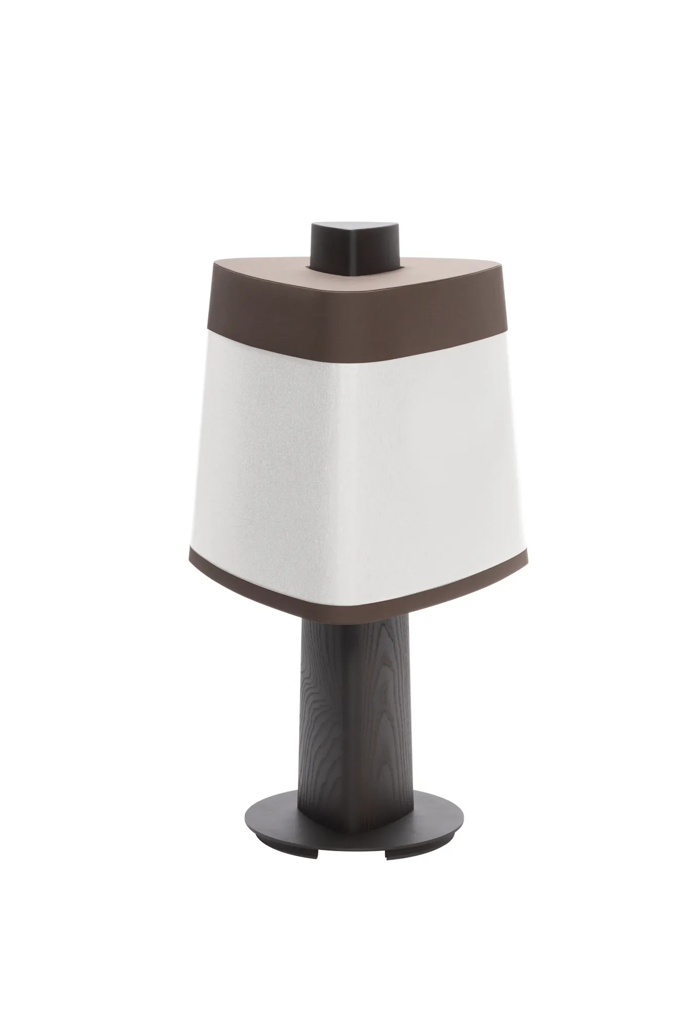 Materials: wood stem (the wood finish can be either dark-stained Canaletto walnut or wenge) and burnished bronze base. Provided with a fine cotton white lampshade. Custom sizes available on request.