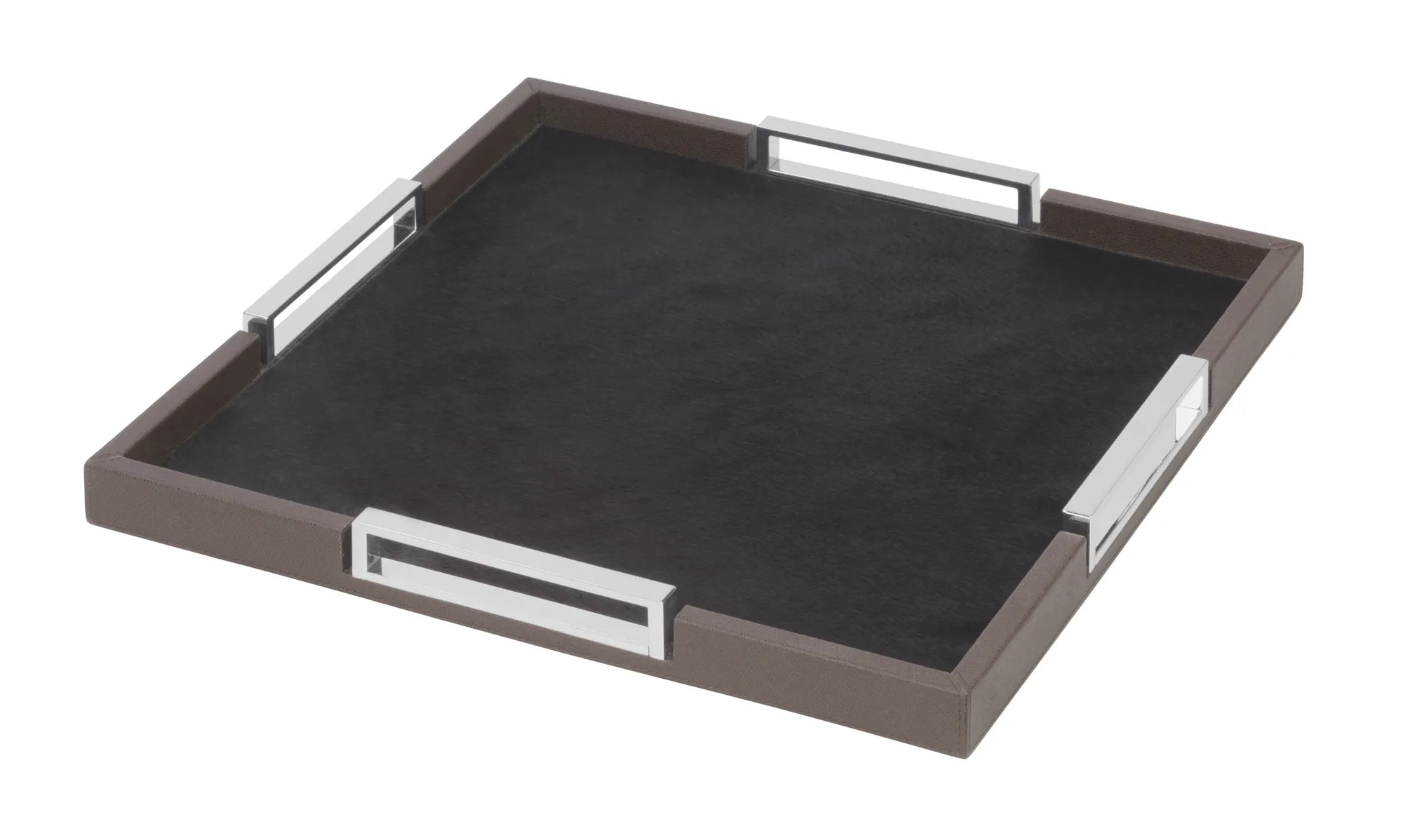 Leather covered wood structure. Metal handles with chrome finish. Wood structure covered with real shagreen leather (mole brown / black).