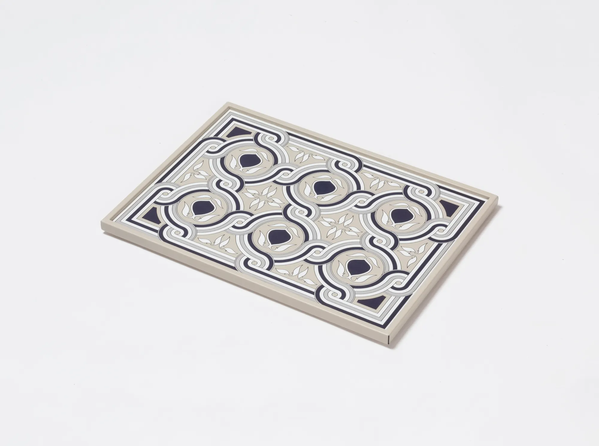 Leather-covered wood structure. Graphic pattern inspired by a decoration on the left side facade of the Basilica di San Marco in Venice.