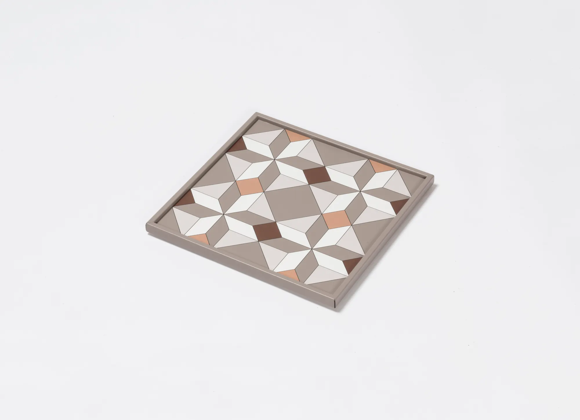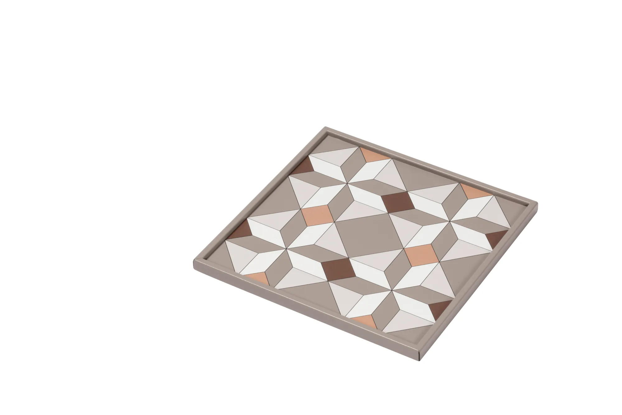Leather-covered wood structure. Interweaving decorative motif from a marble grating of a window of the Prison of San Marco in Venice.