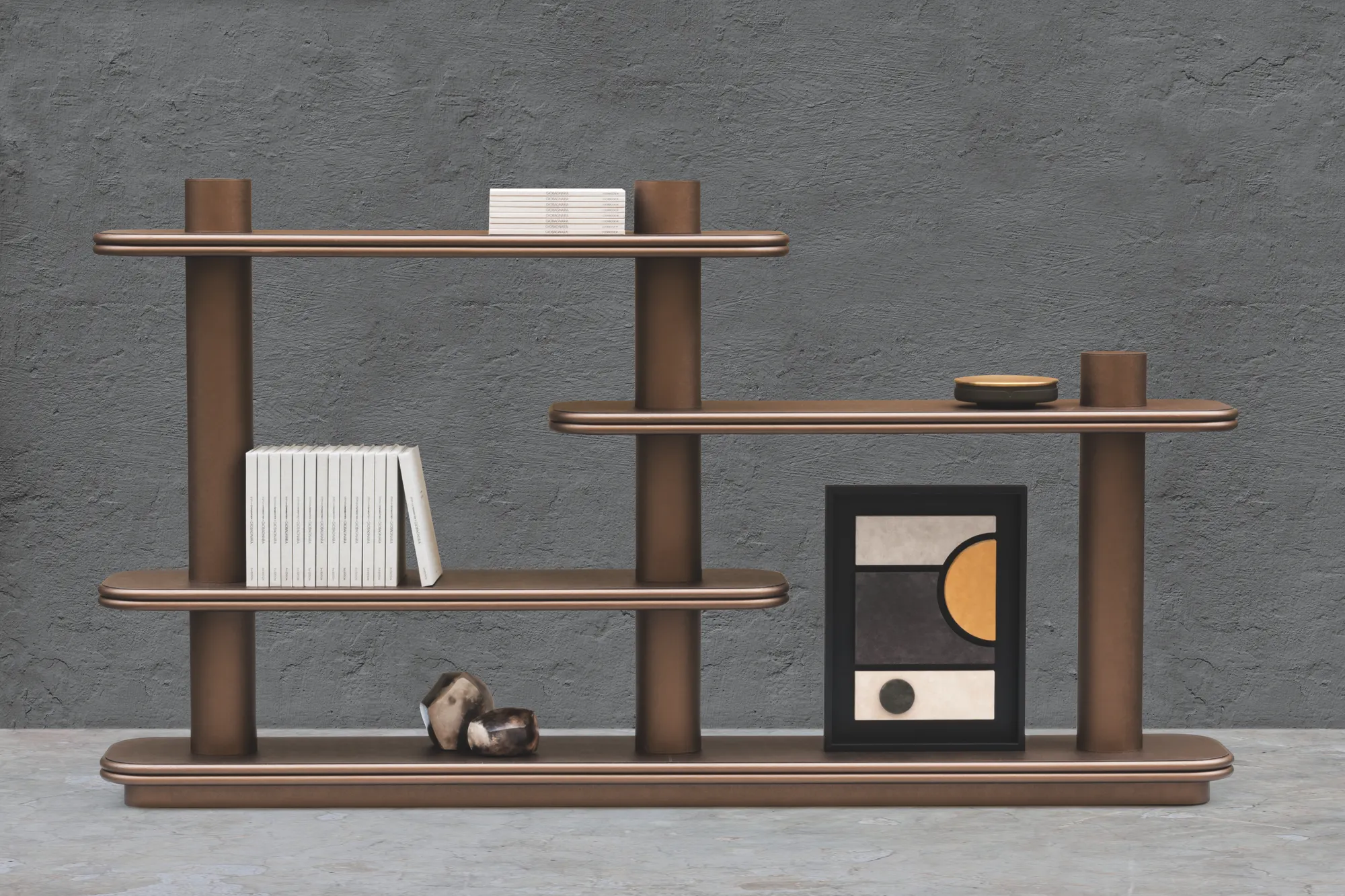 This line objects was inspired by the stacked shape often seen at the base of some buildings in Italy, as well as Salvatore Ferragamos celebrated heel. The Scala collection features a selection of furnitures such as stools, tables, end tables, nightstands and sideboards, as well as small interior decor and accessories such as centerpieces, boxes, lanterns and vases, which all have an identical recurring motif, layered and highlighted by deliberately thick legs, that lends a delicate graphic line. At times, a pure cylindrical shape stands alone; at others a duo or a trio form a stool or occasional table. The key to these pieces elegance is absolute precision of proportions. A choice of light, dark or muted colours creates the option to match or vary colours and contrasts.