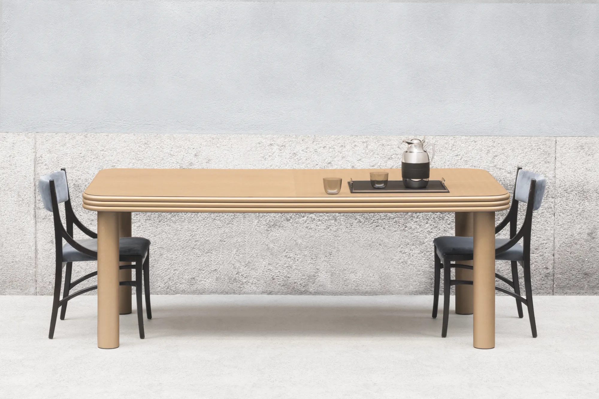 This line objects was inspired by the stacked shape often seen at the base of some buildings in Italy, as well as Salvatore Ferragamos celebrated heel. The Scala collection features a selection of furnitures such as stools, tables, end tables, nightstands and sideboards, as well as small interior decor and accessories such as centerpieces, boxes, lanterns and vases, which all have an identical recurring motif, layered and highlighted by deliberately thick legs, that lends a delicate graphic line. At times, a pure cylindrical shape stands alone; at others a duo or a trio form a stool or occasional table. The key to these pieces elegance is absolute precision of proportions. A choice of light, dark or muted colours creates the option to match or vary colours and contrasts.