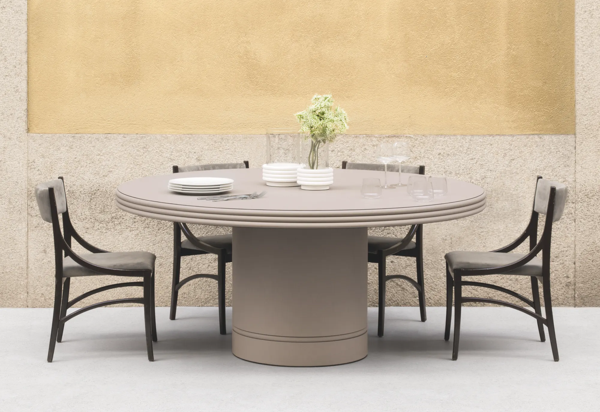 This line objects was inspired by the “stacked” shape often seen at the base of some buildings in Italy, as well as Salvatore Ferragamo’s celebrated heel. The Scala collection features a selection of furnitures such as stools, tables, end tables, nightstands and sideboards, as well as small interior decor and accessories such as centerpieces, boxes, lanterns and vases, which all have an identical recurring motif, layered and highlighted by deliberately thick legs, that lends a delicate graphic line. At times, a pure cylindrical shape stands alone; at others a duo or a trio form a stool or occasional table. The key to these pieces’ elegance is absolute precision of proportions. A choice of light, dark or muted colours creates the option to match or vary colours and contrasts.