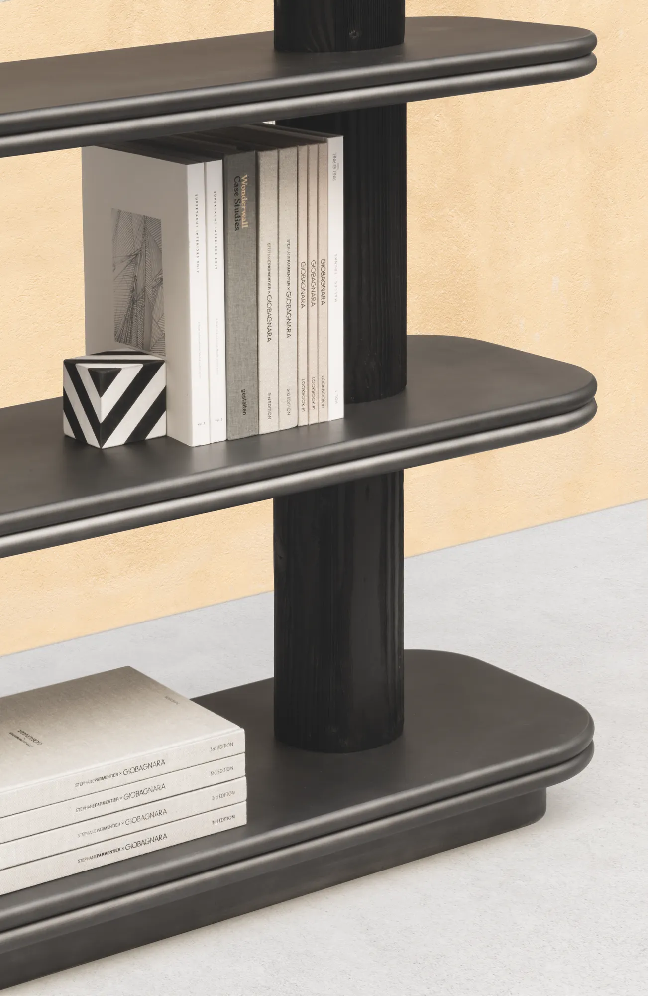 This line objects was inspired by the stacked shape often seen at the base of some buildings in Italy, as well as Salvatore Ferragamos celebrated hee The Scala collection features a selection of furnitures such as stools, tables, end tables, nightstands and sideboards, as well as small interior decor and accessories such as centerpieces, boxes, lanterns and vases, which all have an identical recurring motif, layered and highlighted by deliberately thick legs, that lends a delicate graphic line. At times, a pure cylindrical shape stands alone; at others a duo or a trio form a stool or occasional table. The key to these pieces elegance is absolute precision of proportions. A choice of light, dark or muted colours creates the option to match or vary colours and contrasts.
