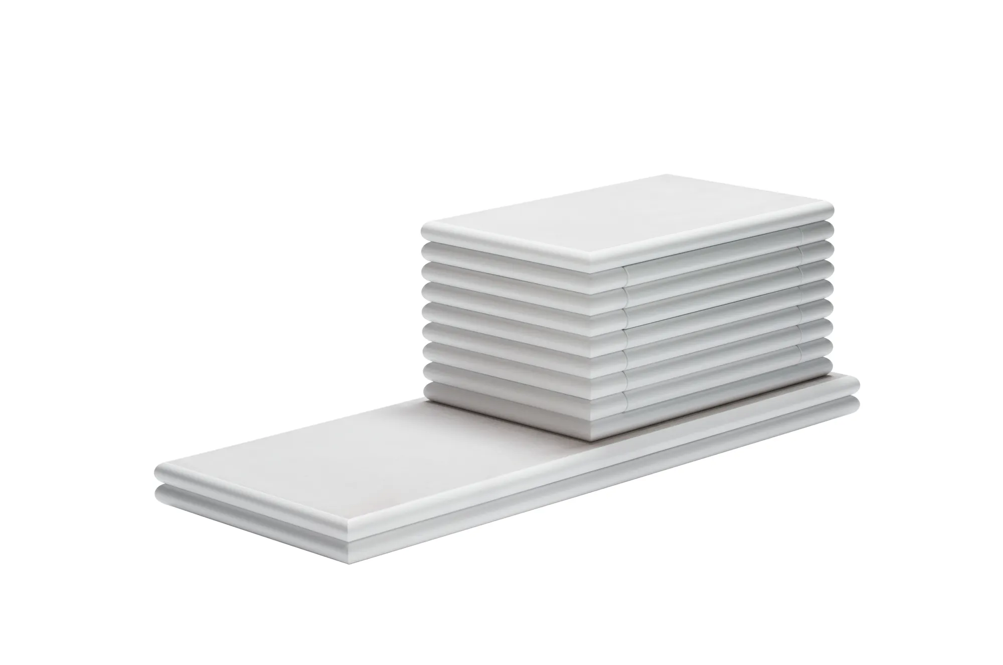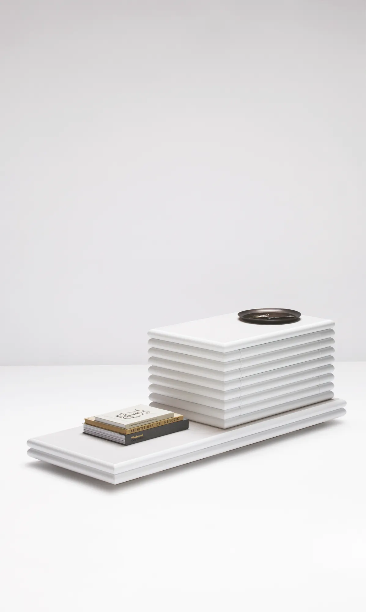 This line objects was inspired by the stacked shape often seen at the base of some buildings in Italy, as well as Salvatore Ferragamos celebrated heel. The Scala collection features a selection of furnitures such as stools, tables, end tables, nightstands and sideboards, as well as small interior decor and accessories such as centerpieces, boxes, lanterns and vases, which all have an identical recurring motif, layered and highlighted by deliberately thick legs, that lends a delicate graphic line. At times, a pure cylindrical shape stands alone; at others a duo or a trio form a stool or occasional table. The key to these pieces elegance is absolute precision of proportions. A choice of light, dark or muted colours creates the option to match or vary colours and contrasts.