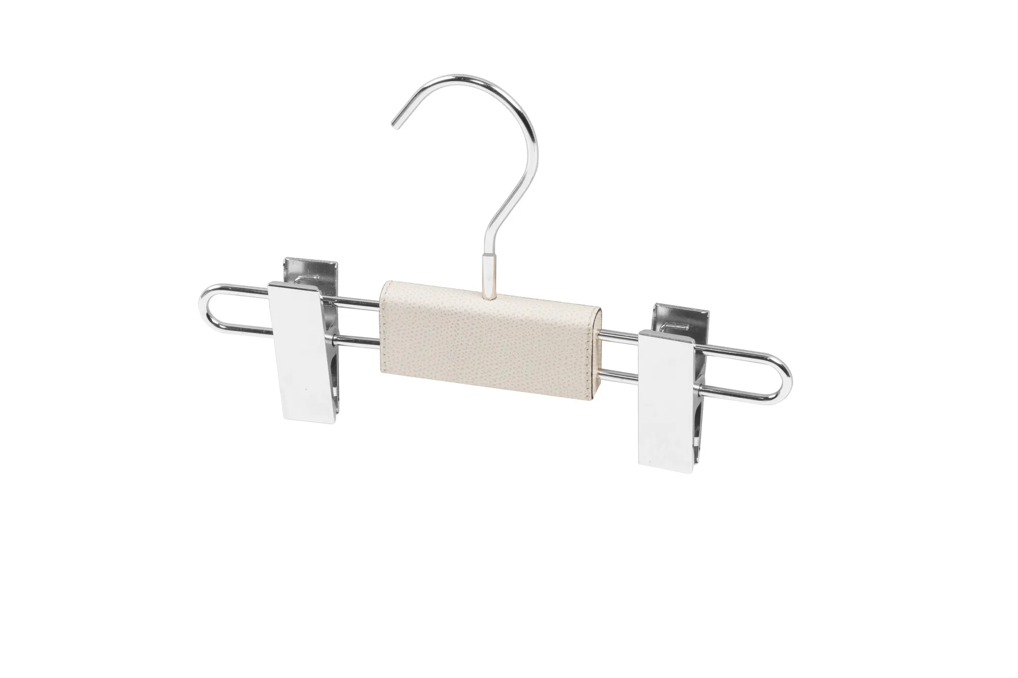 Space saving leather-covered wood structure. Provided with anti-slip movable clips. No 'clanking' — ideal for airplanes and yachts. Available only in chrome.