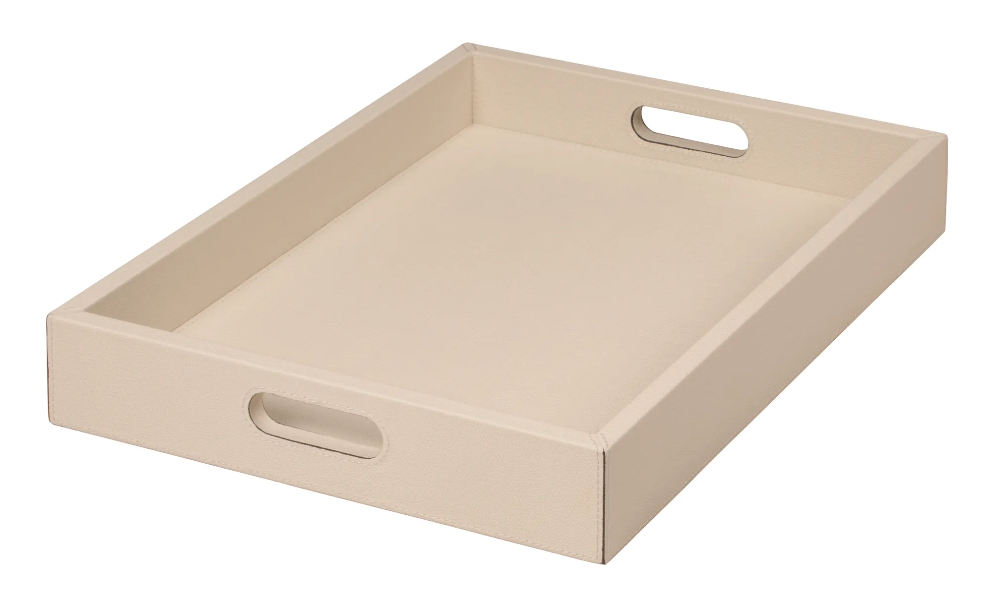 Leather covered wood structure. Provided with 2 leather stripes underneath that facilitate grip.