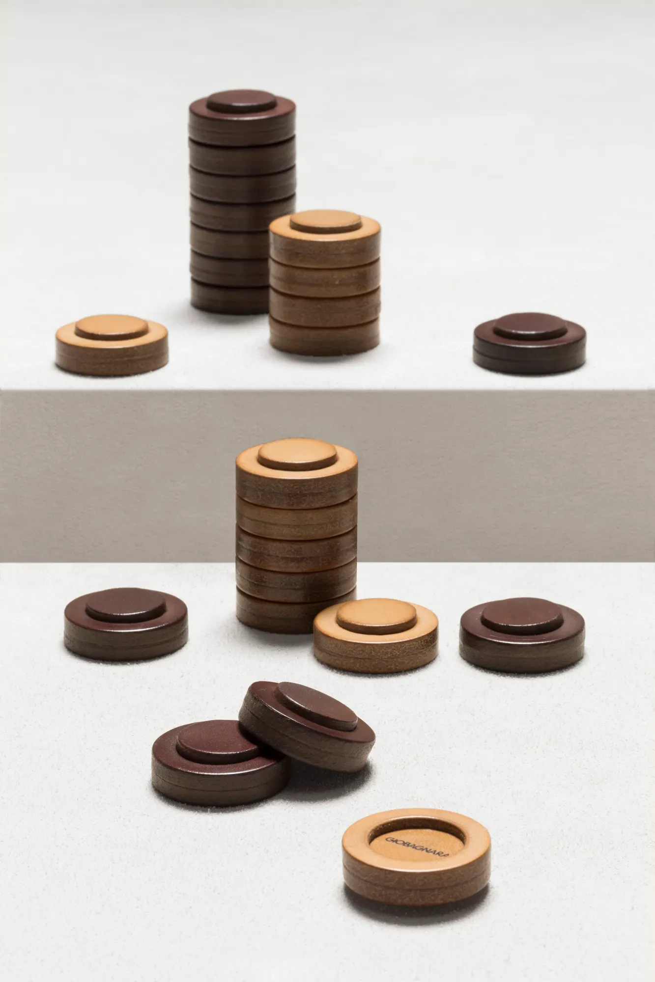 Sole leather draughts pieces made in brown (SL09) and natural (SL51) colors.