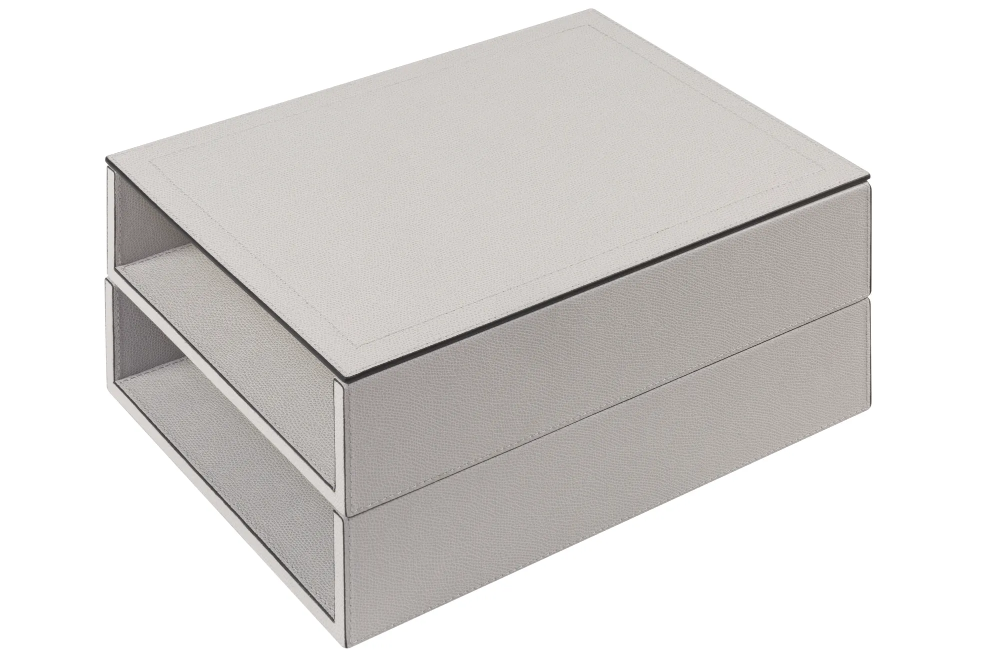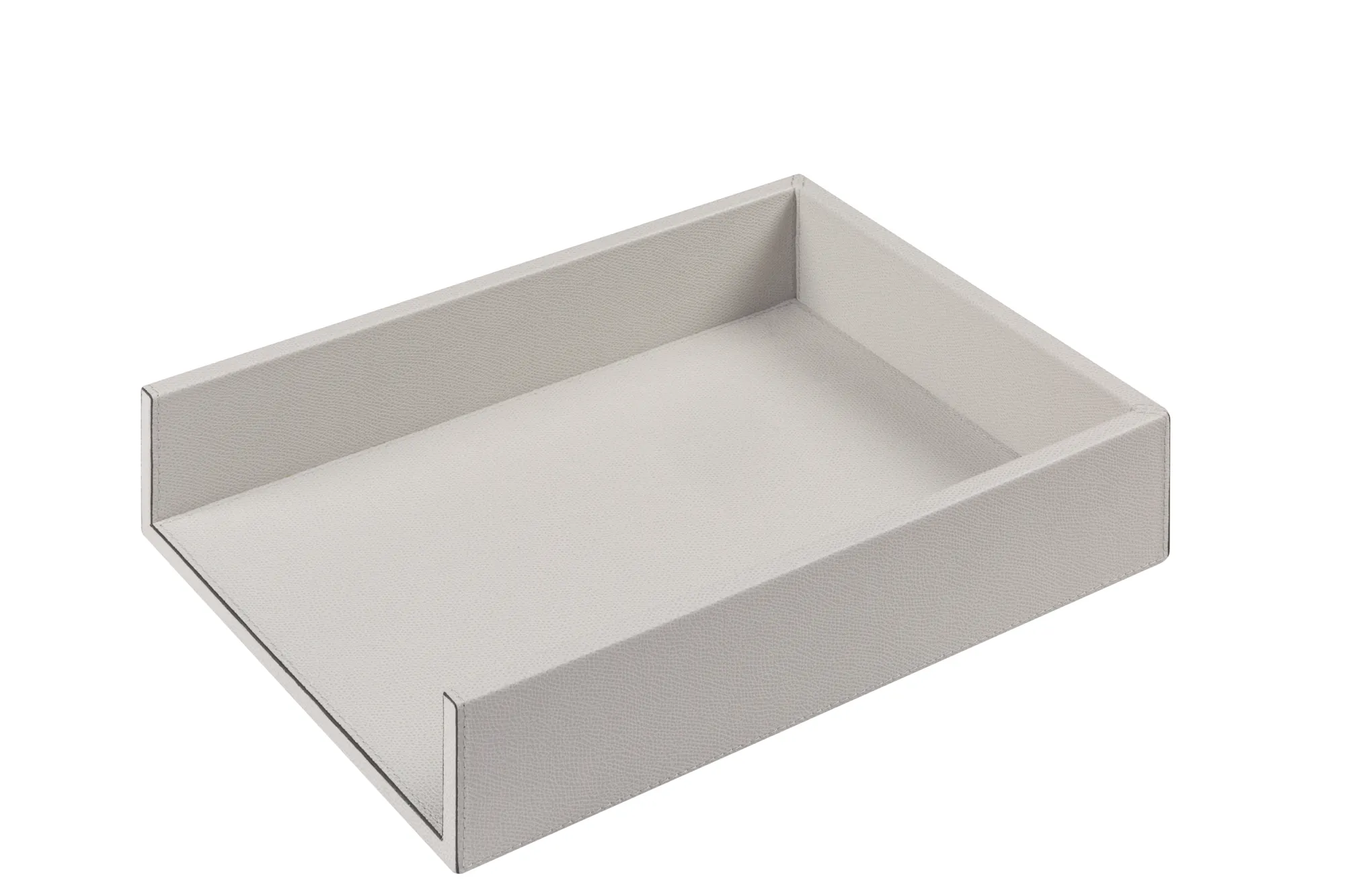 A4 PAPER TRAY. Leather covered wood structure. Optional lid. A double level base with different dimensions makes this pieces stackable.