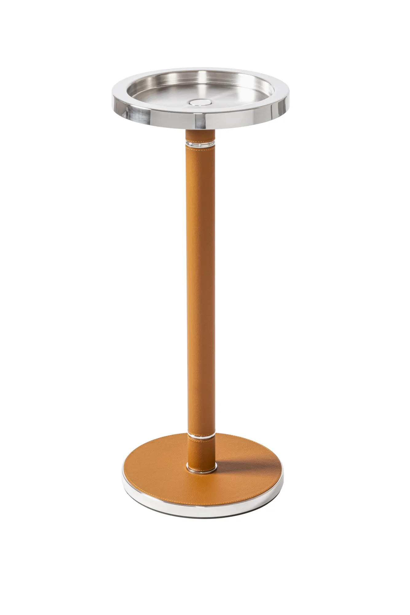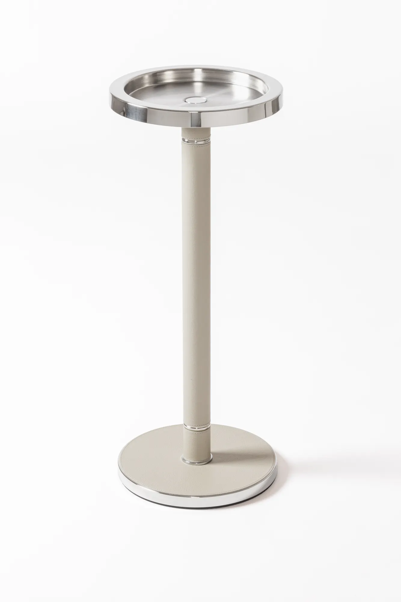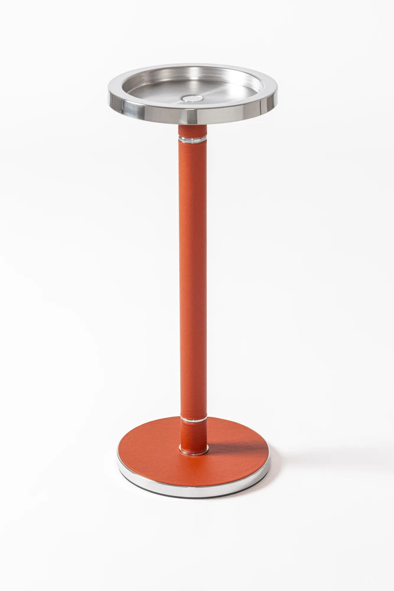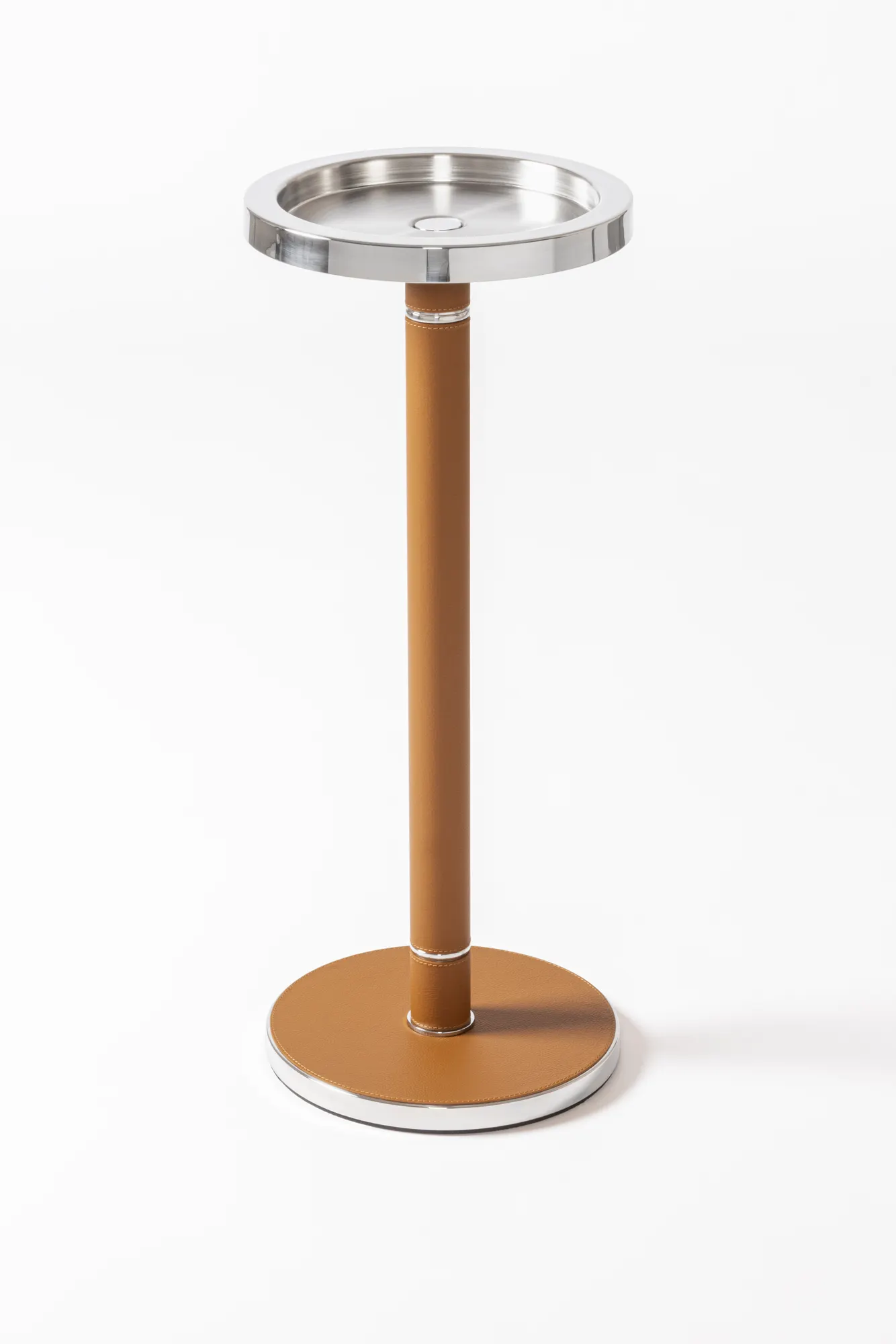 This champagne bucket features an insulated double-chamber polished steel structure. The rich leather detailing complements the sturdy metal construction beautifully. Entirely made in Pelle Frau®. Available in all the colors from the Giobagnara x Poltrona Frau finishes chart.