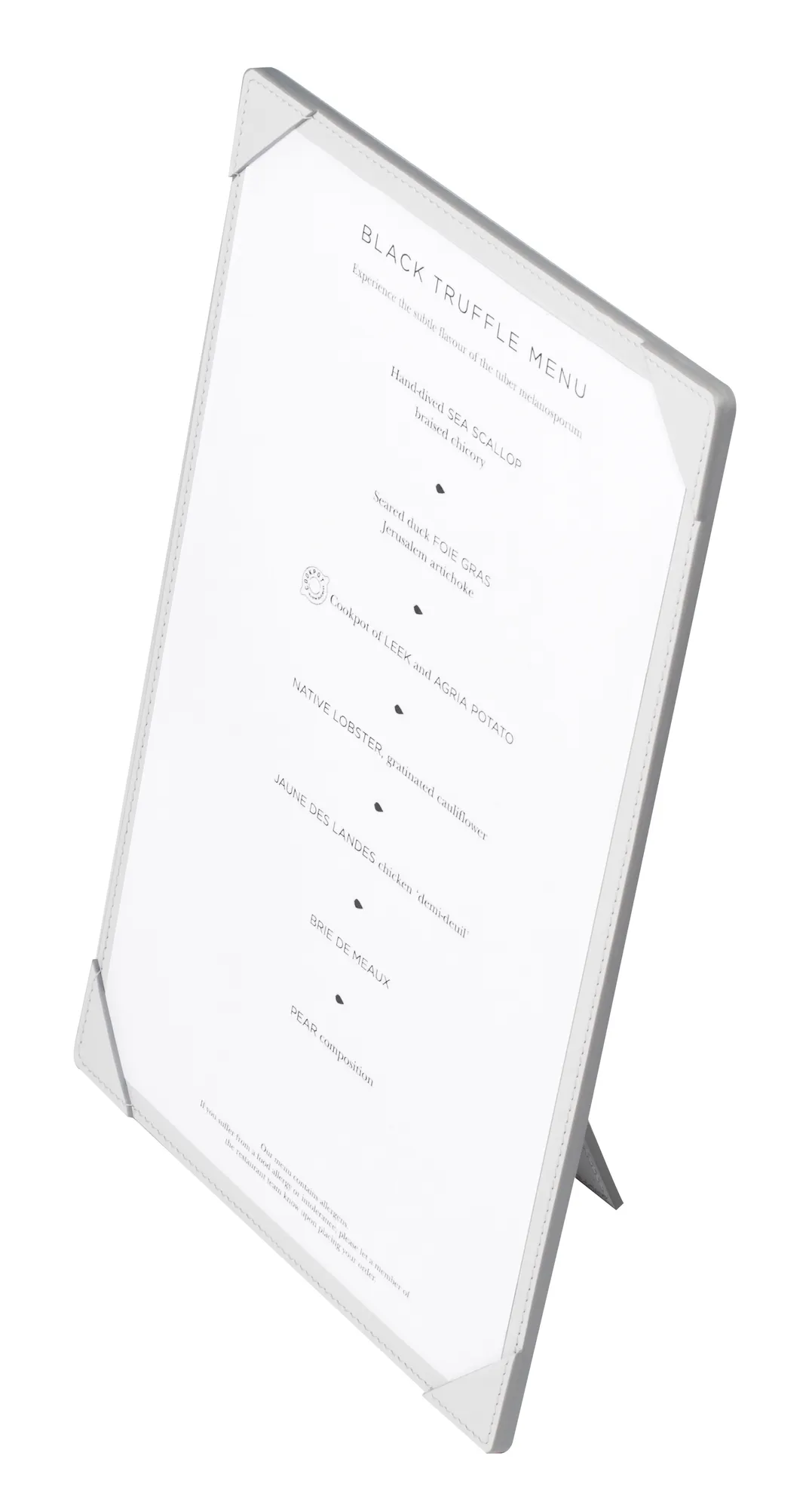 Can stand both horizontally or vertically. Hosts one paper. Finest regenerated leather structure with water-resistant and UV-resistant finish.