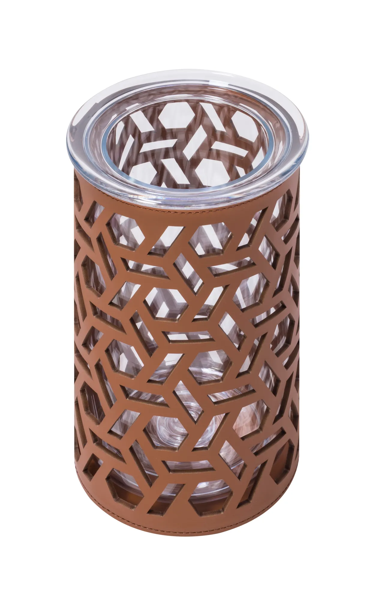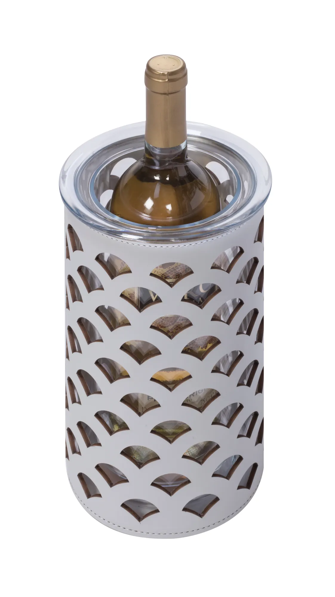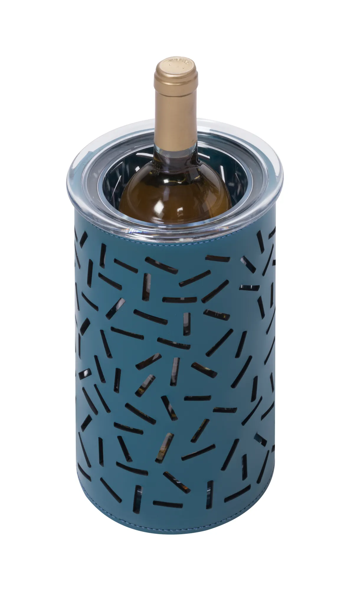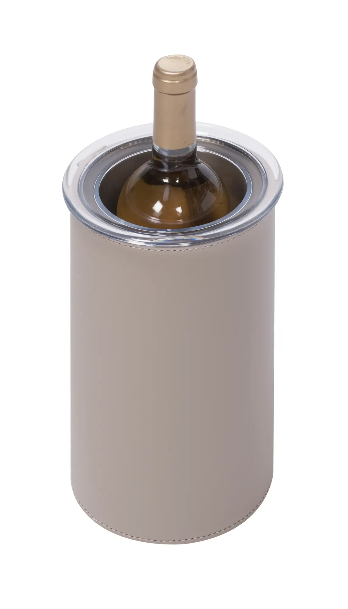 Finest regenerated leather structure with water-resistant and UV-resistant finish. Non-slip waterproof rubber base underneath. Removable acrylic thermal bottle cooler for easy cleaning that keeps wine cold for about 3 hours.