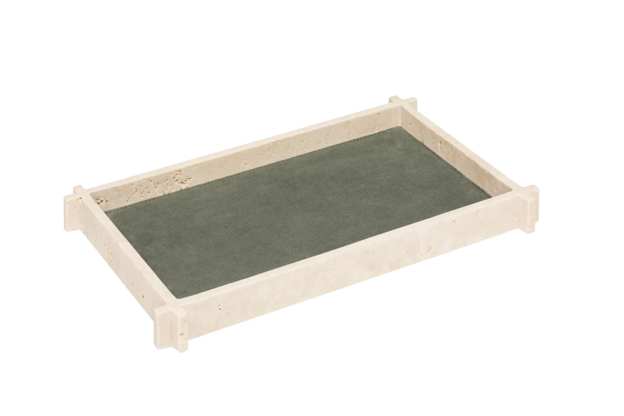 With their minimal formal line enhanced by distinctive "L" shaped corners, these valet trays are perfect accessories for any space. The combination of two precious natural materials, such as travertine and the finest italian leather, generates a perfect aesthetic balance. Custom sizes available on request.