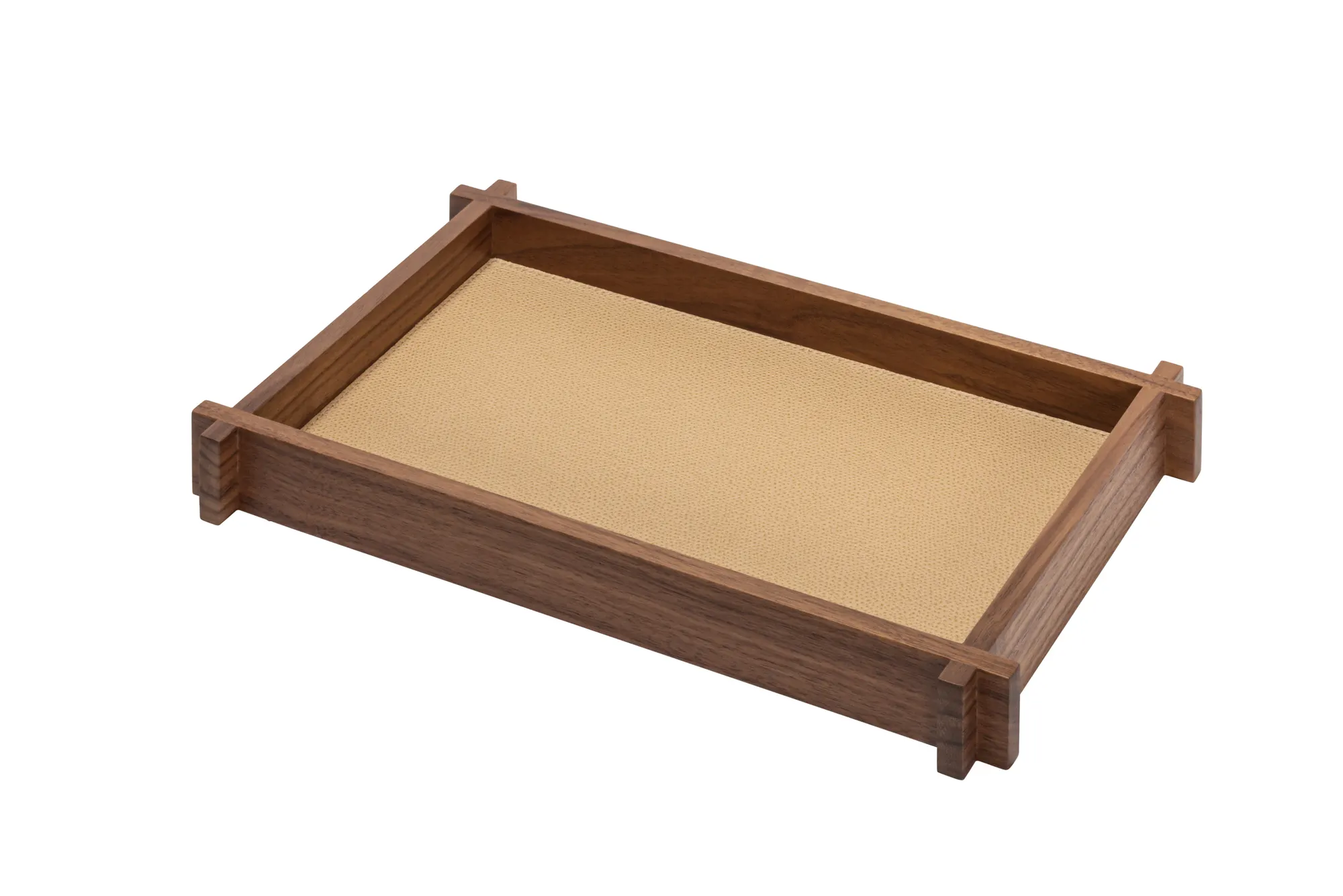 STRUCTURA LEATHER & WOOD LONG RECTANGULAR VALET TRAY MEDIUM