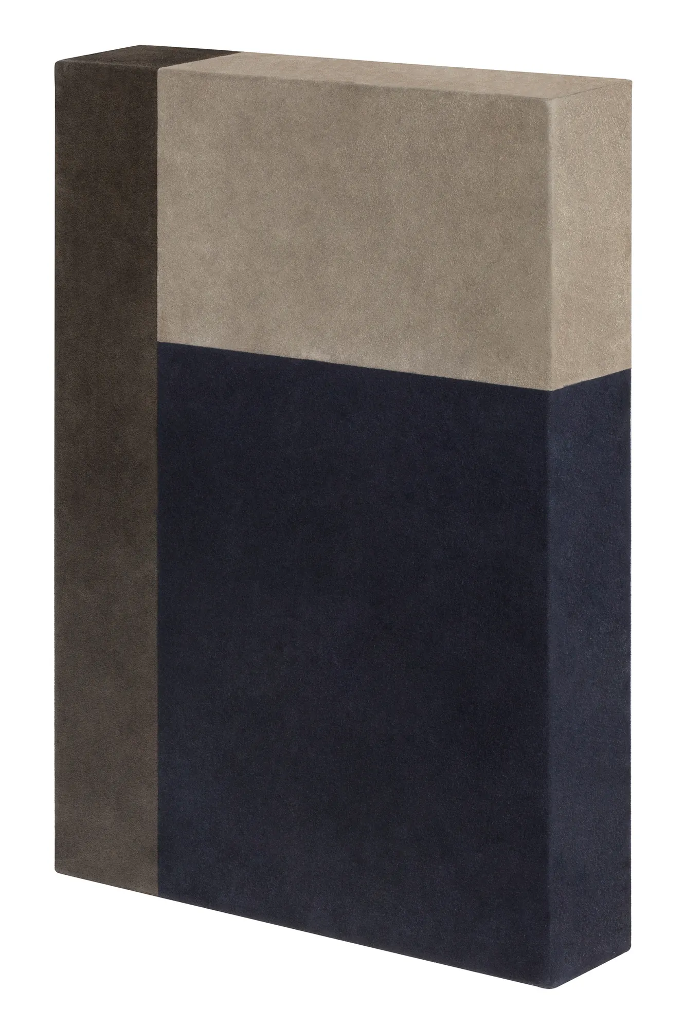Hung on a wall like paintings or used as decorative elements on a shelf, these three-dimensional units covered in suede, used individually or in multiple compositions, create a connection between the minimalist sculptures by Donald Judd and the graphic geometries of Ettore Sottsass. Leather-covered wood structure.