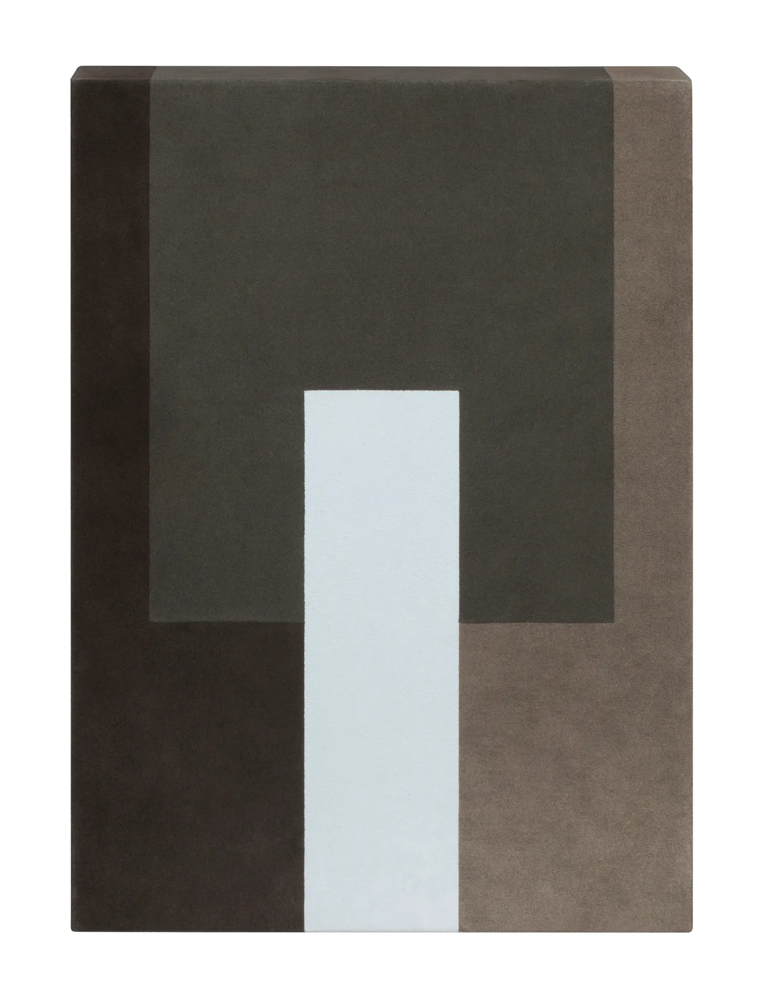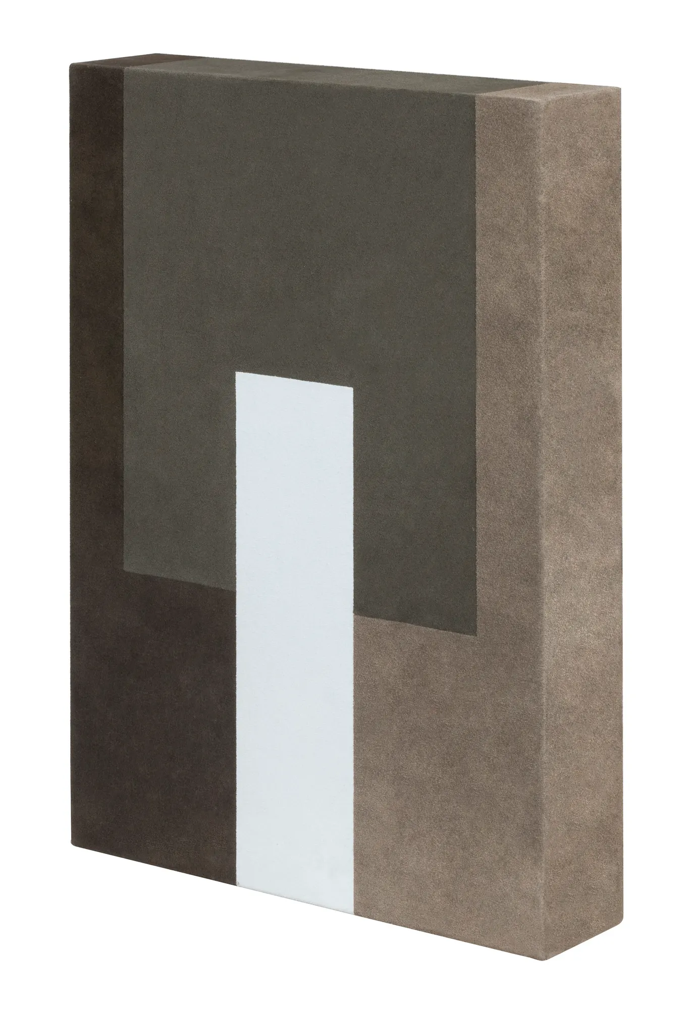 Hung on a wall like paintings or used as decorative elements on a shelf, these three-dimensional units covered in suede, used individually or in multiple compositions, create a connection between the minimalist sculptures by Donald Judd and the graphic geometries of Ettore Sottsass. Leather-covered wood structure.