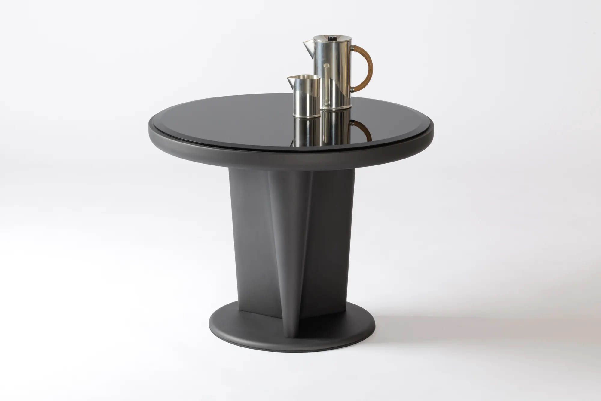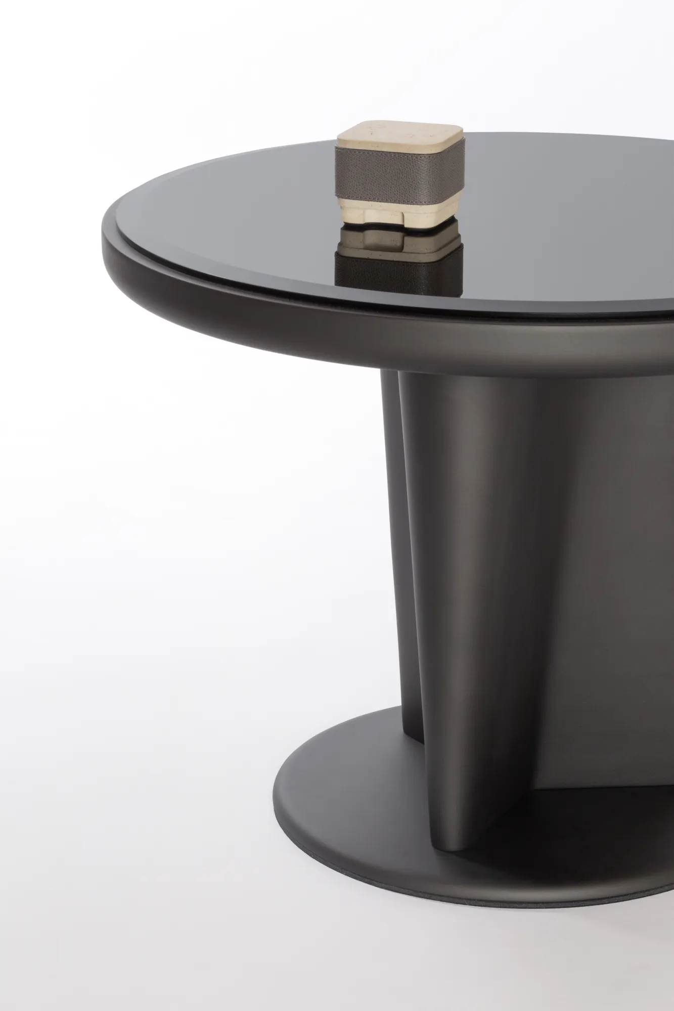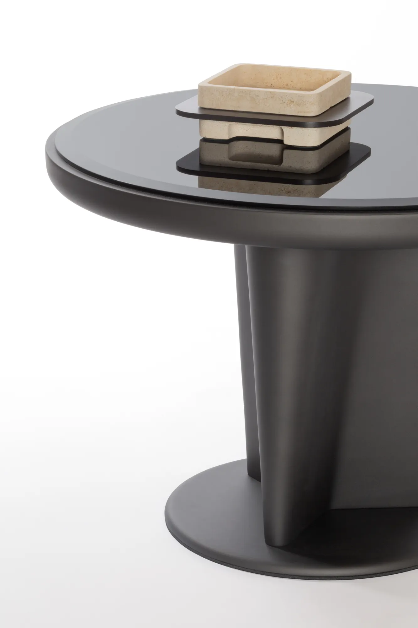 Materials: raw bronze or dark bronze-lacquered wood structure with bronze-colored glass top insert. Custom sizes available on request.