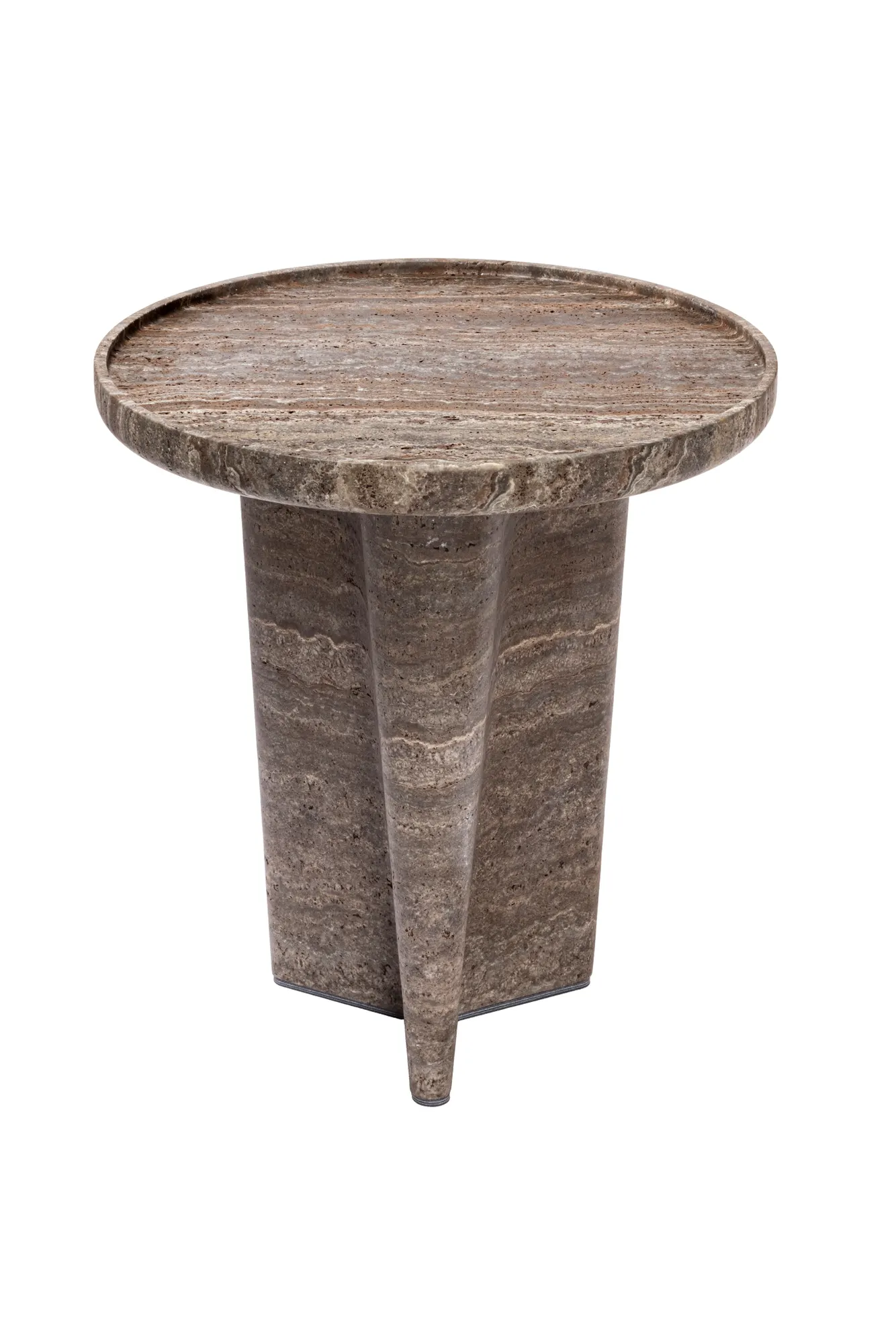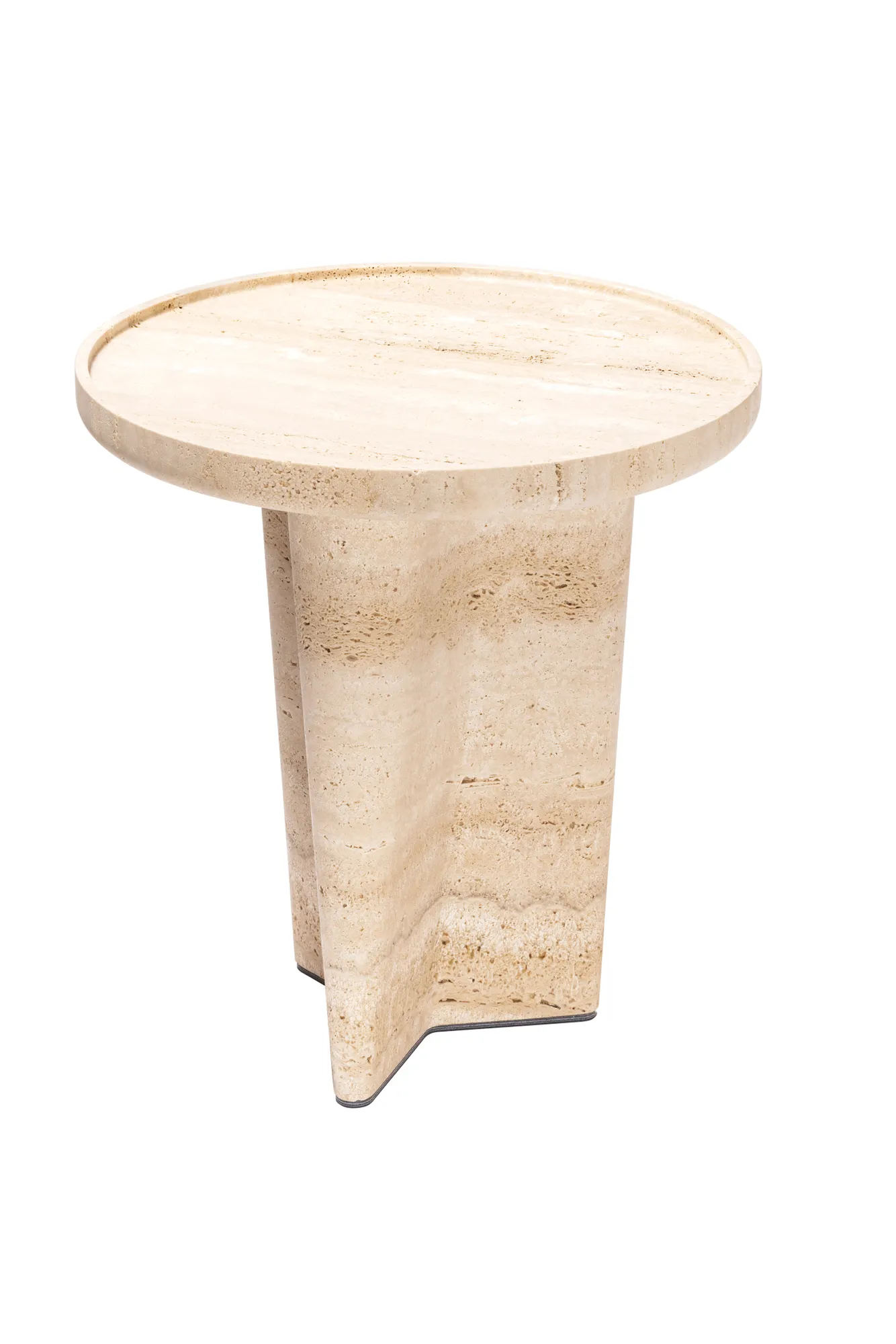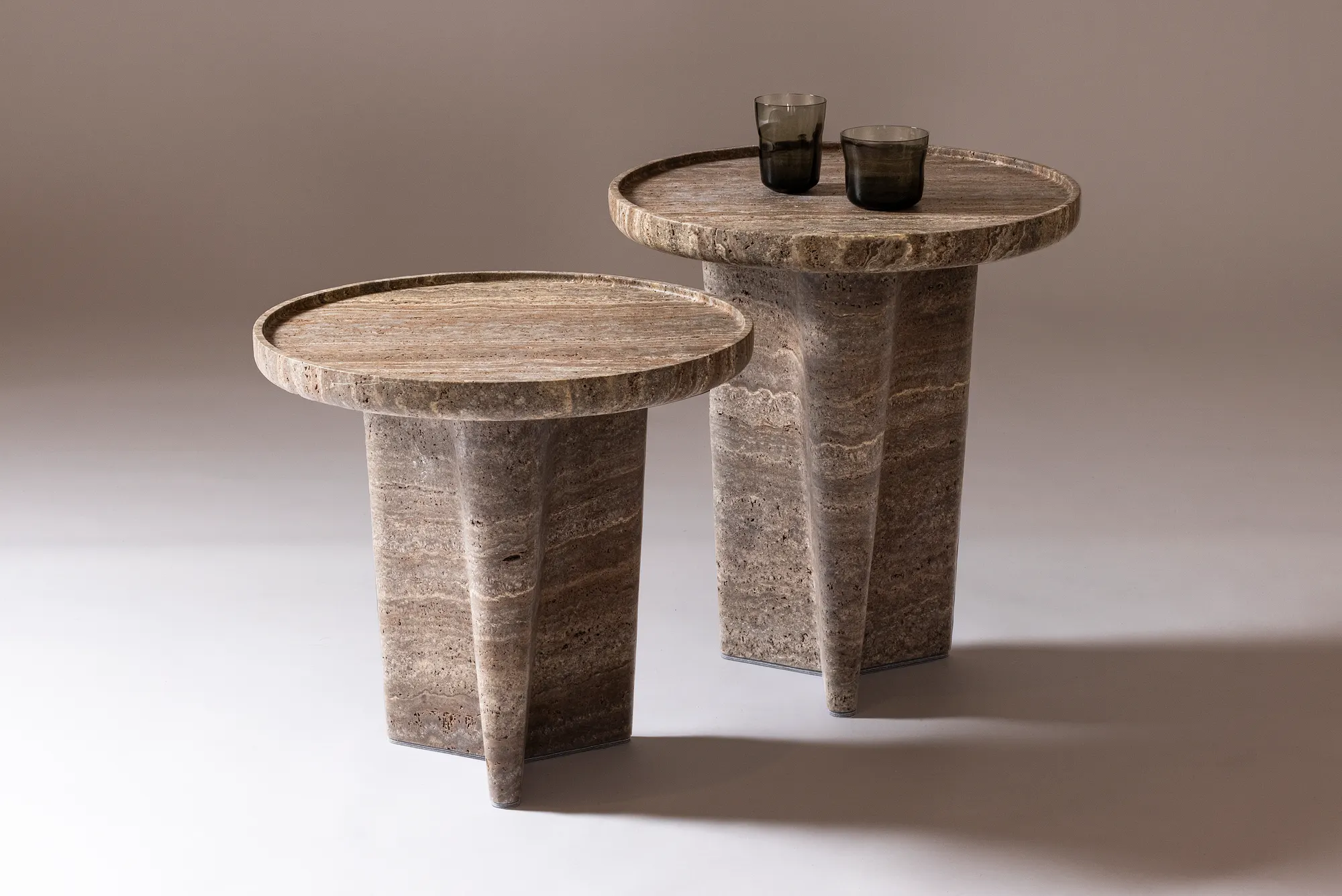 Blending minimalist, contemporary design with the timeless elegance of travertine, these pieces exude natural sophistication. The trilobed base, sculpted with precision, showcases travertines rich textures and subtle veining, drawing the gaze upward to the smooth, round top. This harmonious design makes them not only iconic statement pieces but also functional and versatile display units.
