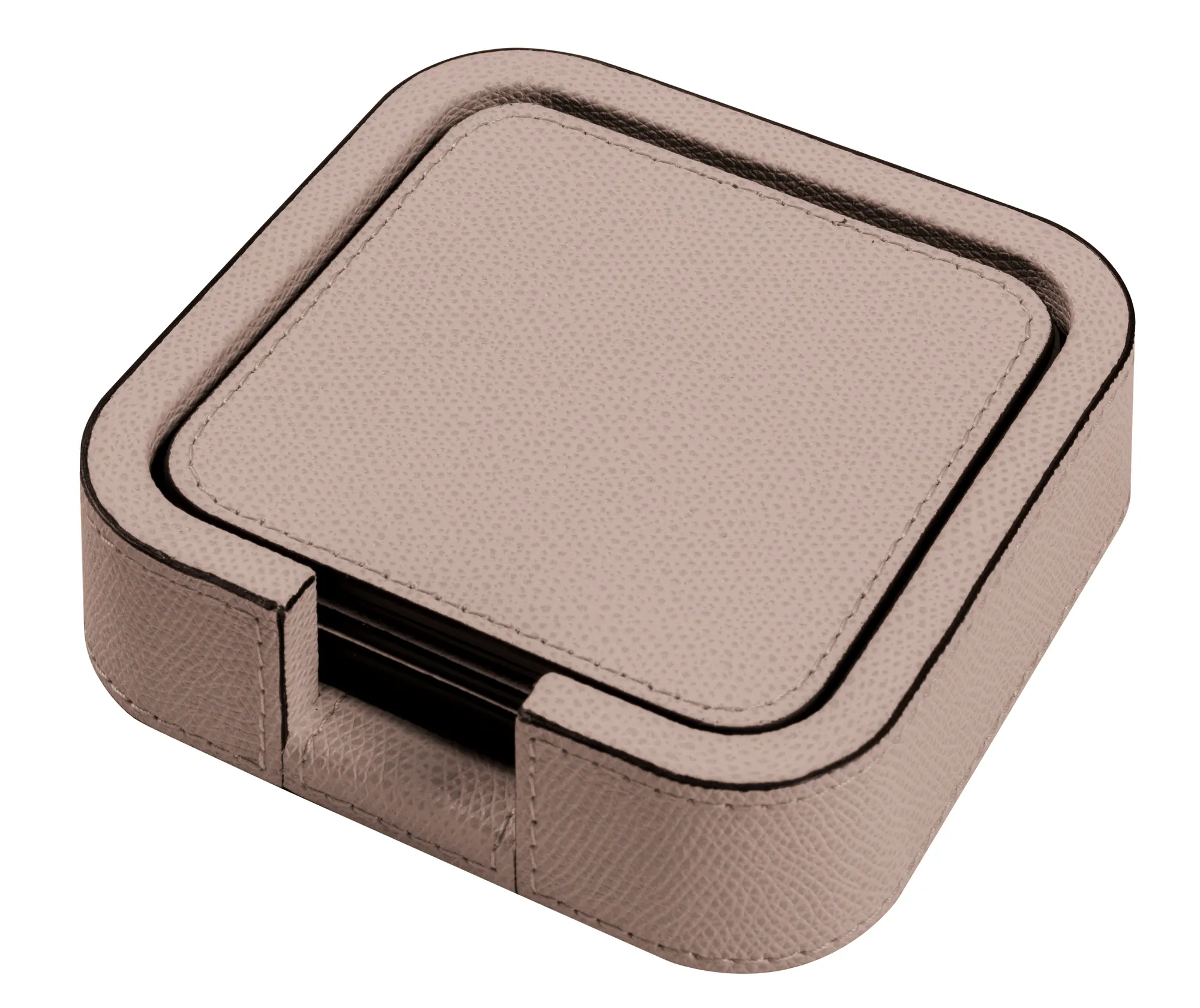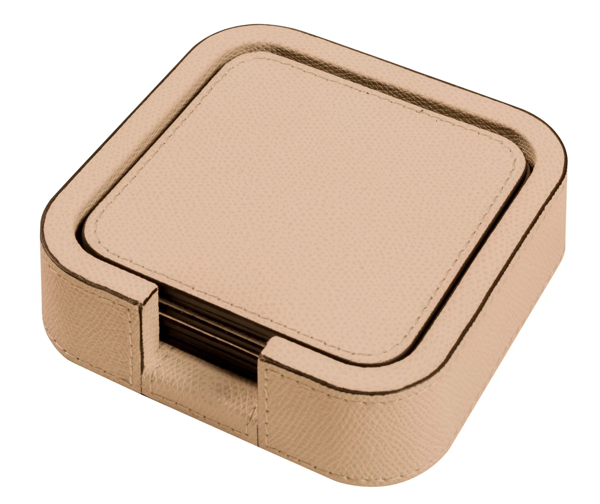 Leather covered wood structure able to host 6 Tao coasters (TP082). Semi-flexible and waterproof.