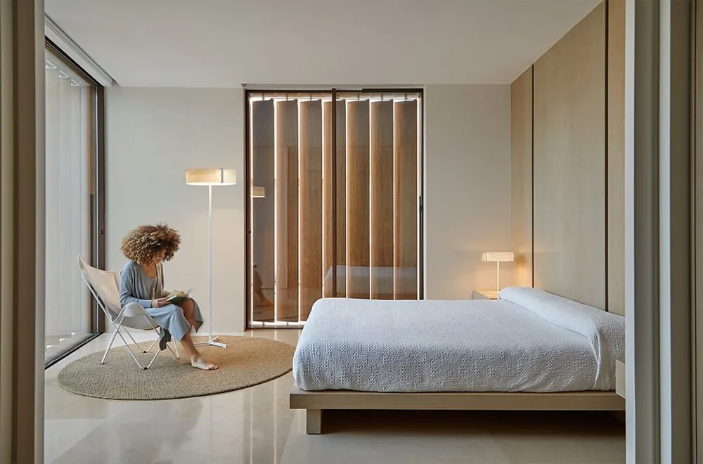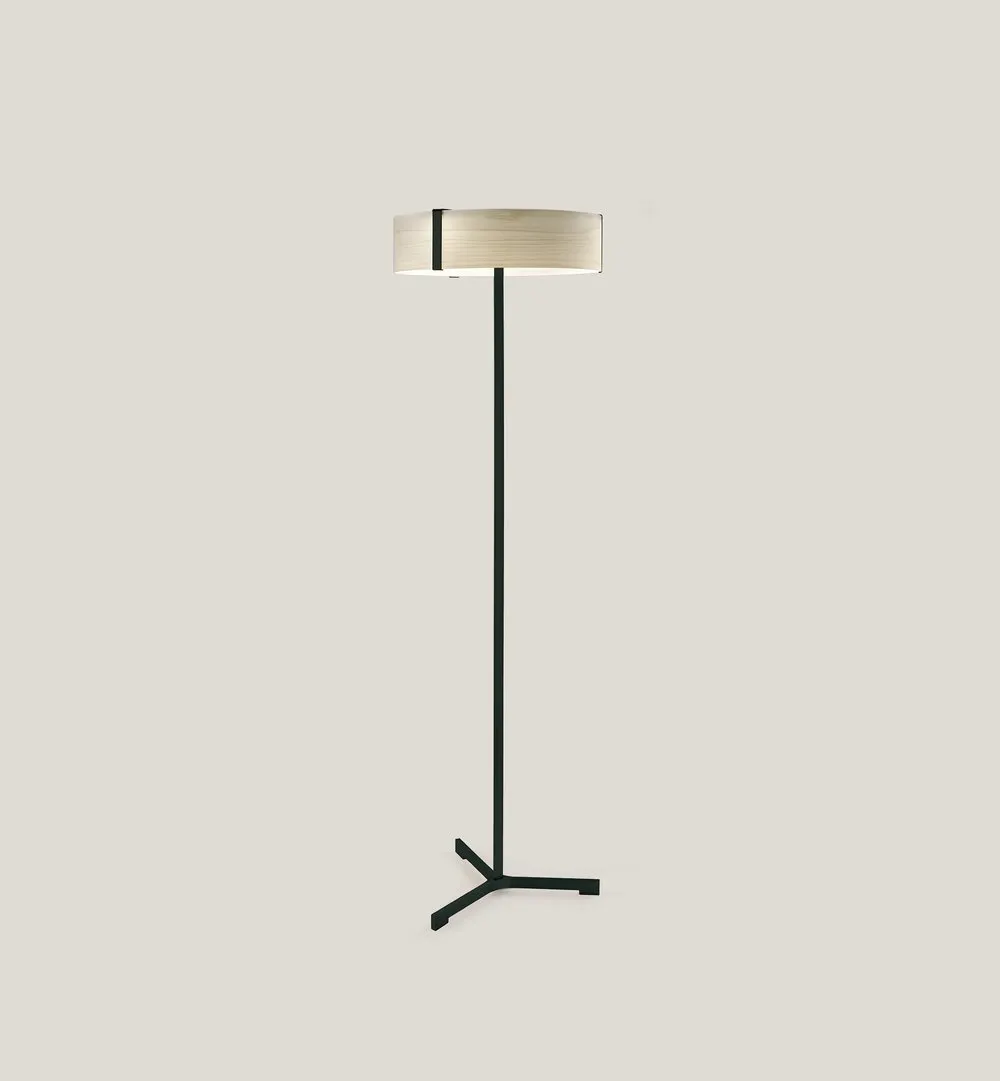 THESIS THE INTROVERTED LIGHT. Spanish architect Ramón Esteve strives to embody clarity, simplicity, consistency, and harmony in design. The Thesis lamp is a reflection of Ramón Esteve’s aesthetic prowess, its minimal form and clean lines free from distraction. Thesis is a quiet light with a smart, introverted personality. Thesis Floor is a modest lamp that pairs a circular wood veneer shade and base. The shade is held in place using a tripod—each leg of the tripod contains an LED that diffuses light downwards. This thoughtful lamp is particularly suited to quiet spaces, such as a library, private study, or cosy corner. Thesis Floor has an Ivory White wood veneer shade. The metal base is available in Black and Matt Ivory finishes.