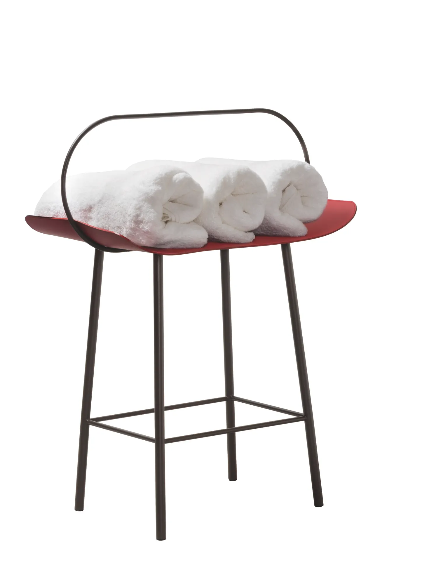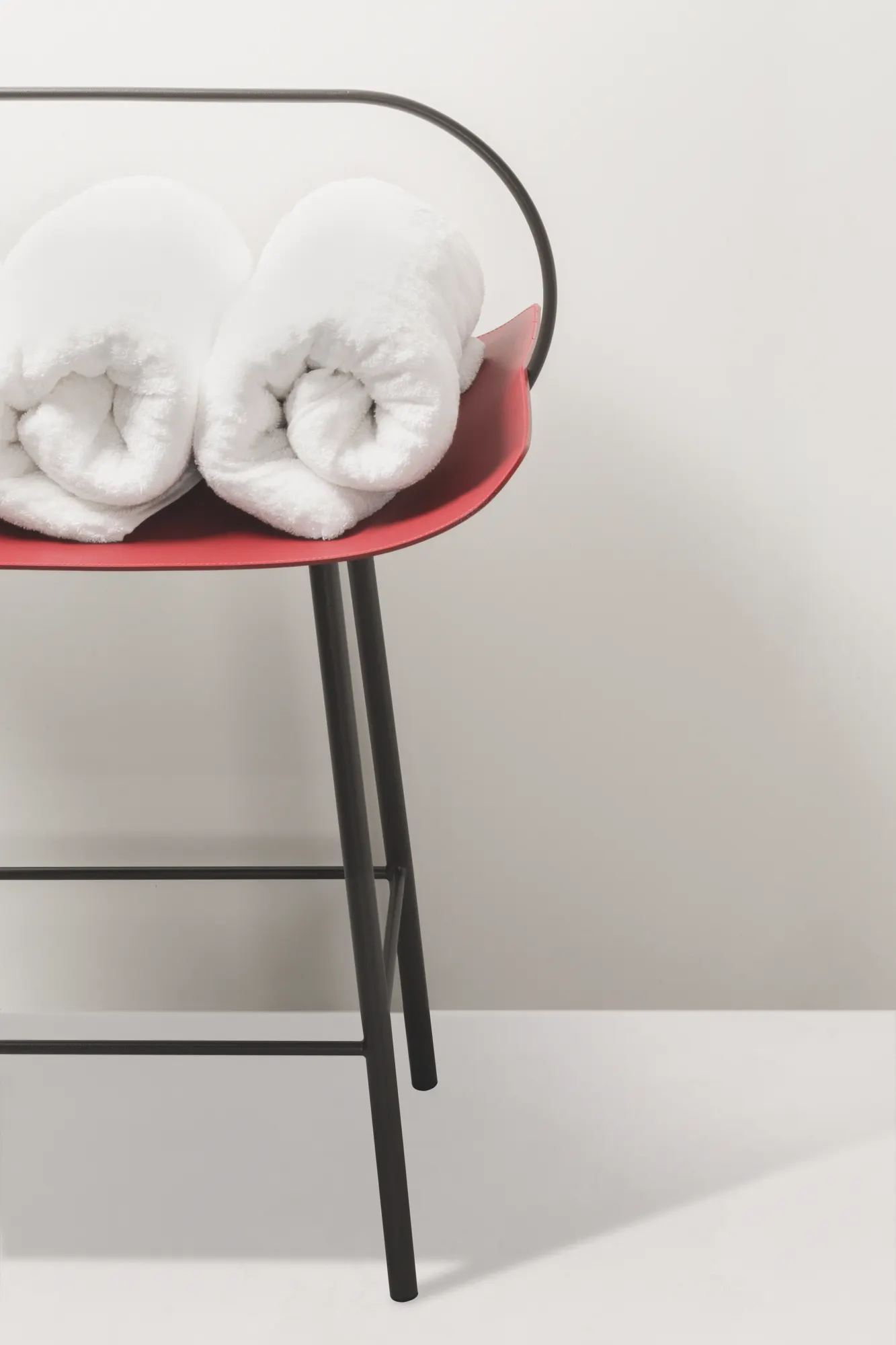 A rack that generates from a single Tecnocuoio® sheet, a finest regenerated leather with water-resistant and UV-resistant finish, moulded and wrapped up in a solid metal structure that transforms into an handle.