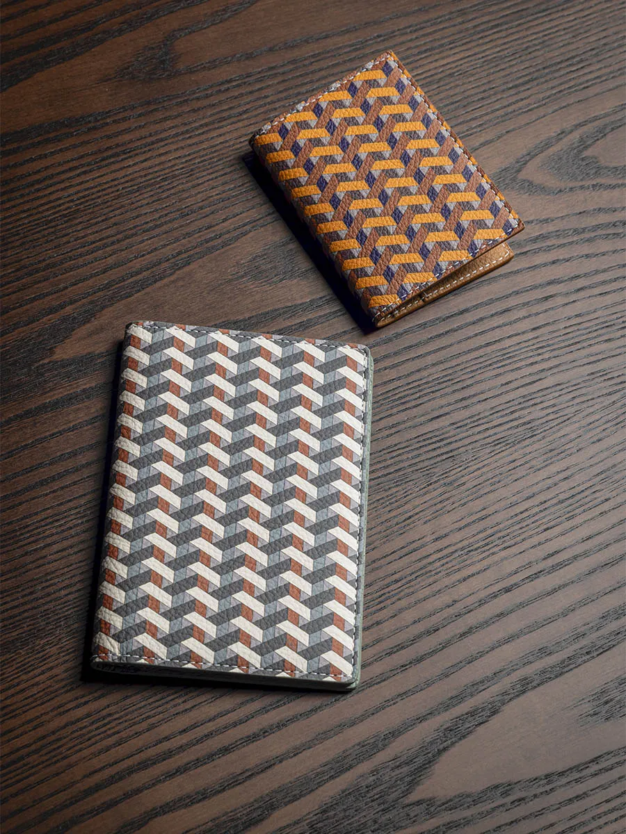 Those who love stylish travelling will appreciate the new collection of small leather goods by Poltrona Frau. Three accessories that are as many signs of style: a document holder, a notebook and a credit card holder made of fine Pelle Frau® Leather, with a classic design and solid and accurate finishes. The exterior is embellished with graphic pattern designed by Simona Cremascoli, which confer a colorful, distinctive and contemporary touch.