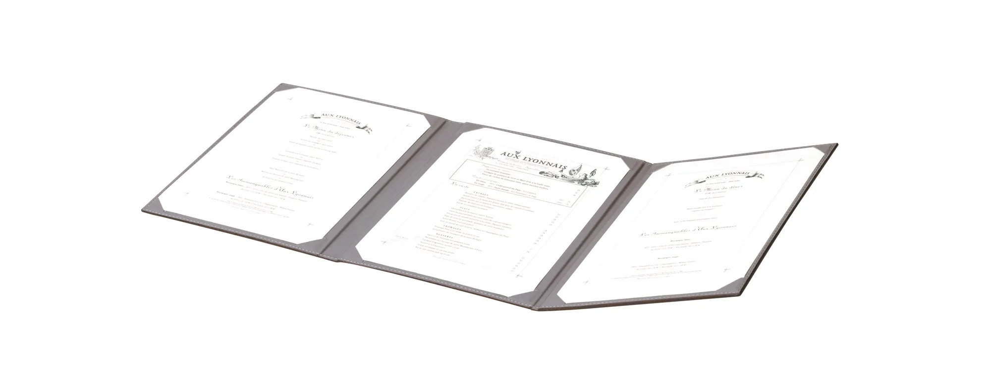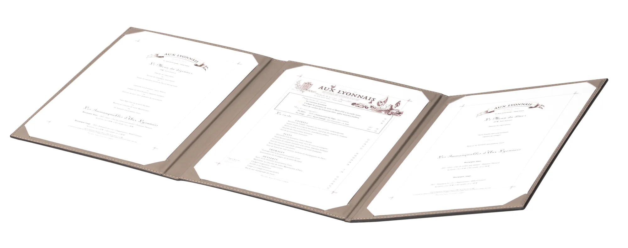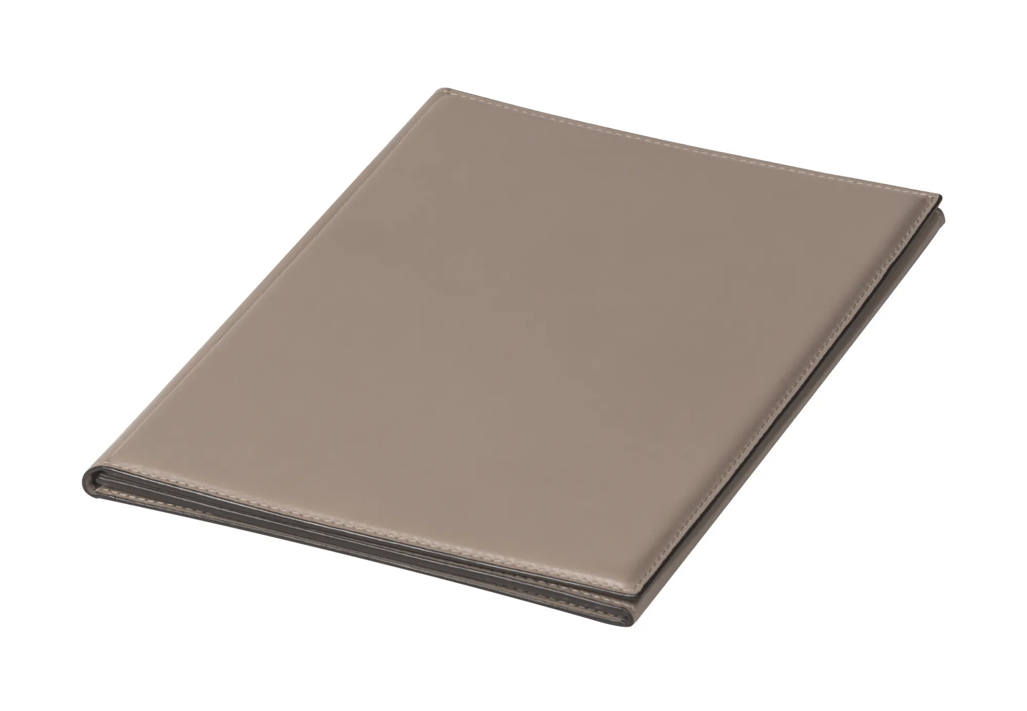 All-leather structure with soft padding on the cover side. Hosts three papers.