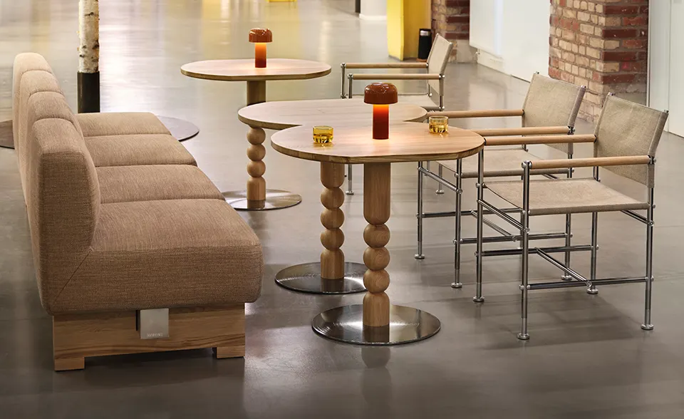 Now we let Turn enter the hospitality areas as a café and dining table with a higher height of 72cm and a footplate in steel. Turn came 2023 as a small coffee table in three heights and sizes for the in-between spaces. A straight-forward elegant table as content in the hybrid workspace as in a private home. The tabletop can be round or square or a “round-square” where the sides are straight, inviting the possibility to put tables together for closer community. With Turn we welcome decoration back into the design world.
