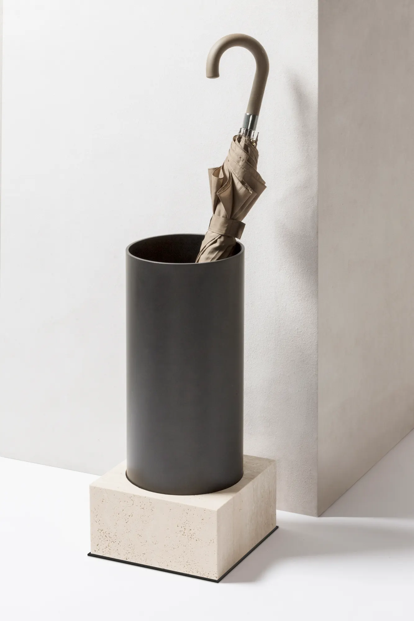 Being characterized by essential geometric volumes that intersect each other, the Ulisse umbrella stands feature monolithic marble bases which host removable thin metal tubes available in different finishes. Custom sizes available on request.