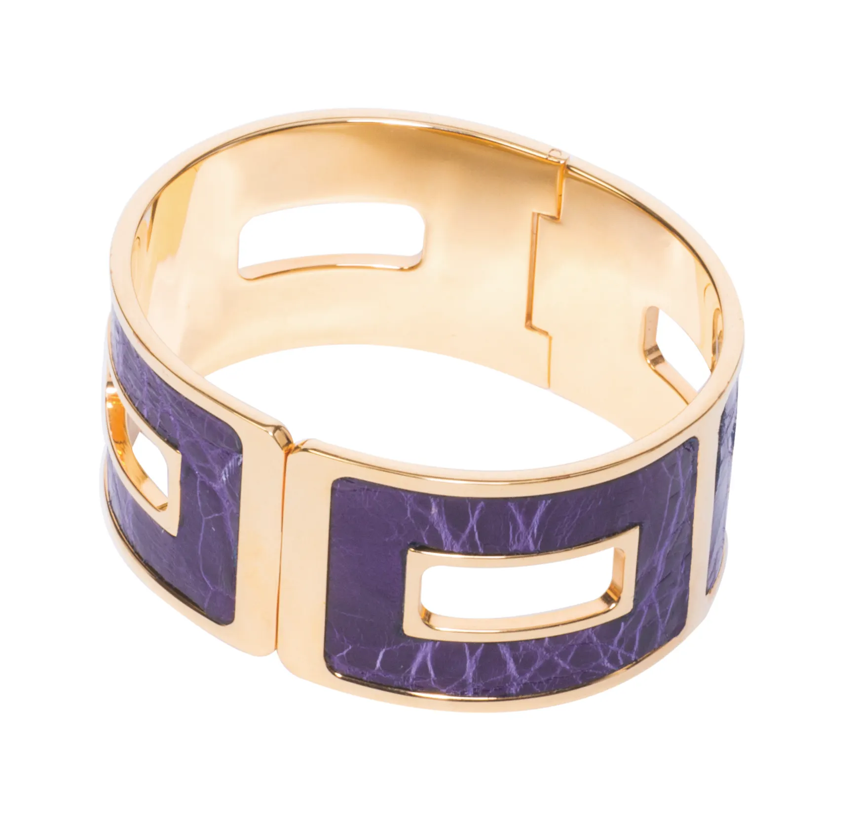 Openable brass palladium / gold-plated bracelet. Adjustable around wrist and hypoallergenic. Styled with 3 (2 cm) or 4 (3 cm) padded stripes. Not available in pony or shagreen.