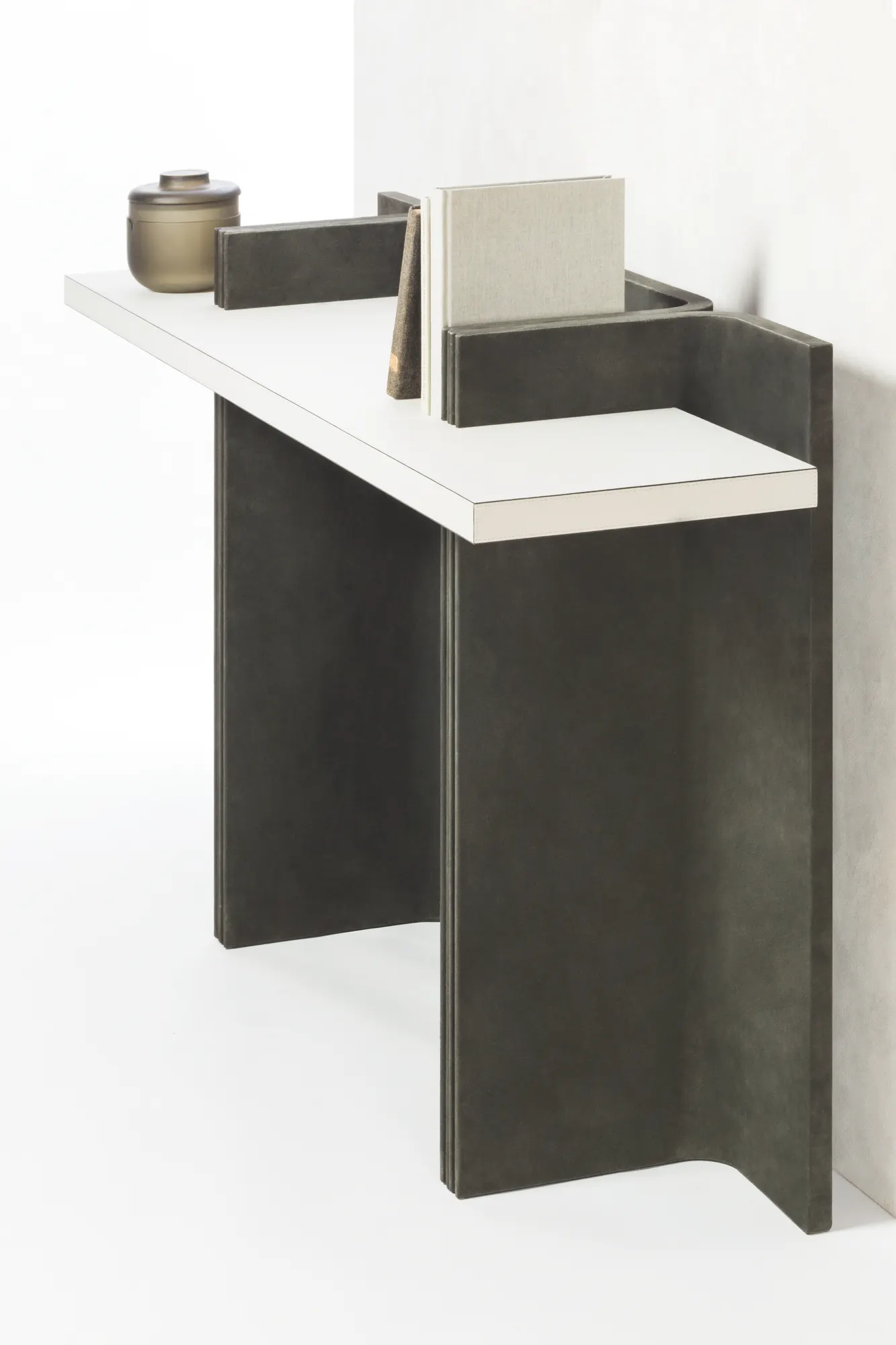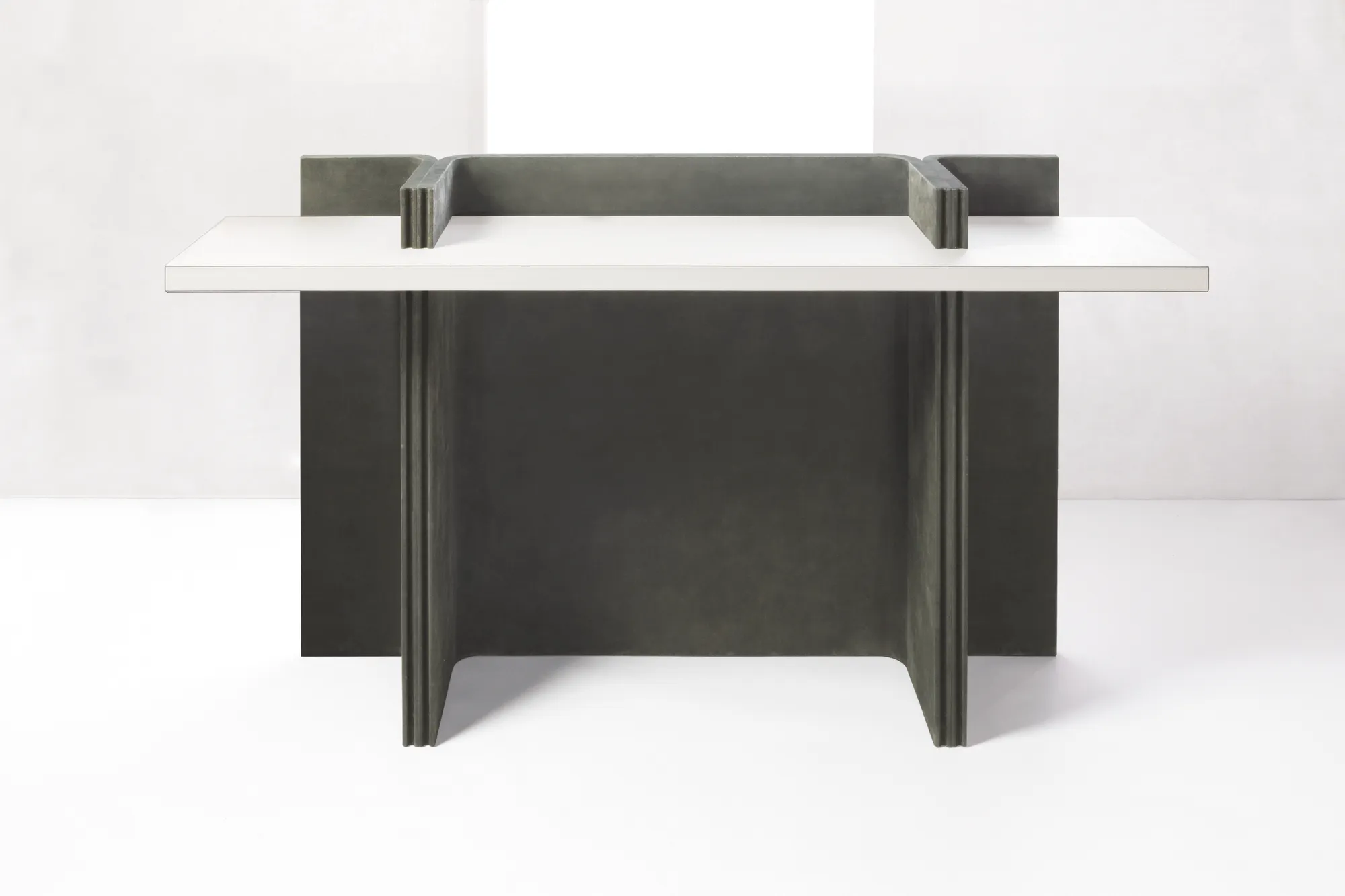 The design of these furniture pieces by Stéphane Parmentier has been influenced by the graphic art of the seventies, an era where artists as Victor Vasarely analyzed the formal qualities of what constituted an aesthetic object and studied nature in search of the building blocks of the visual universe. Here, flat surfaces and colliding curves interact as a visual manifestation of the natural geometry of the organic world.