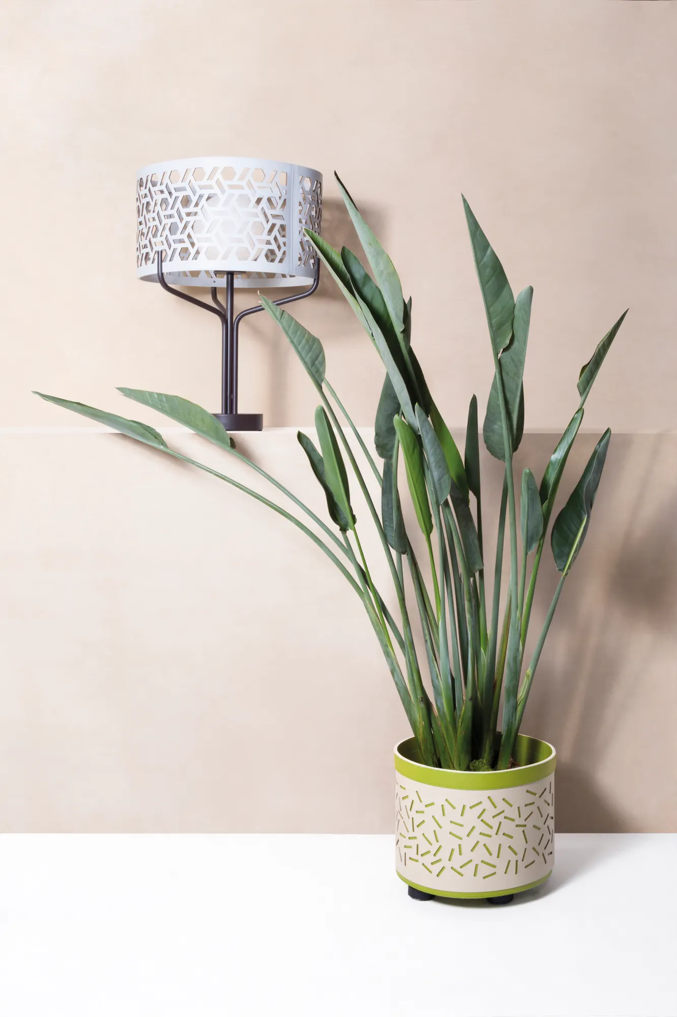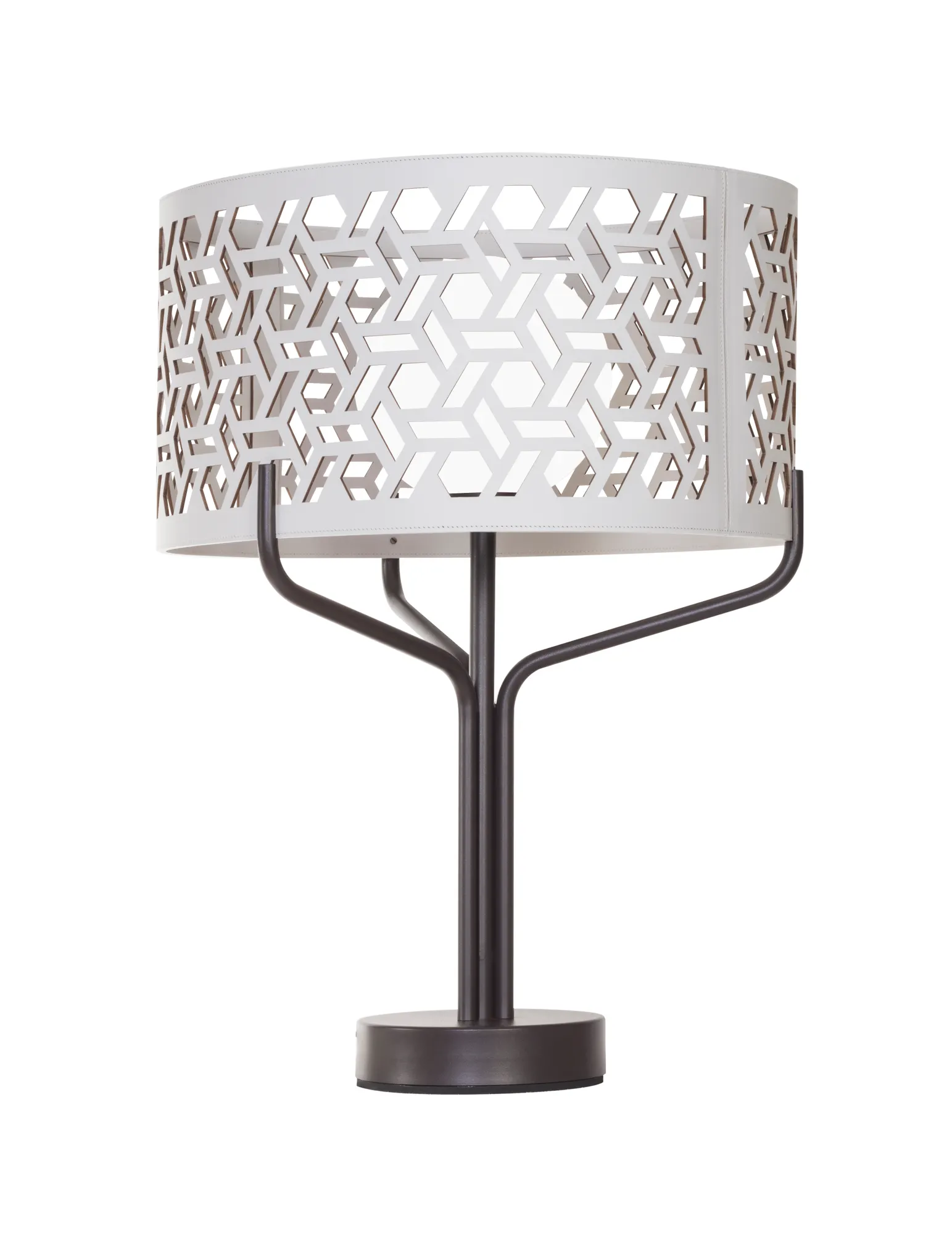 Family of lamps which features a metal structure that wraps around the perforated Tecnocuoio® lampshade. The led light source grants high performance and low power consumption. Versailles lamps are available in the floor, table, abatjour and ceiling versions.