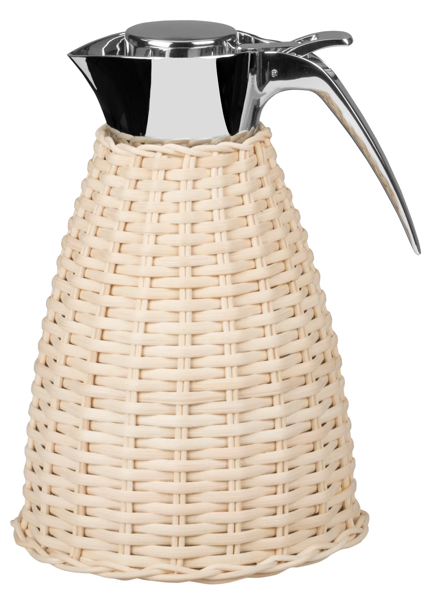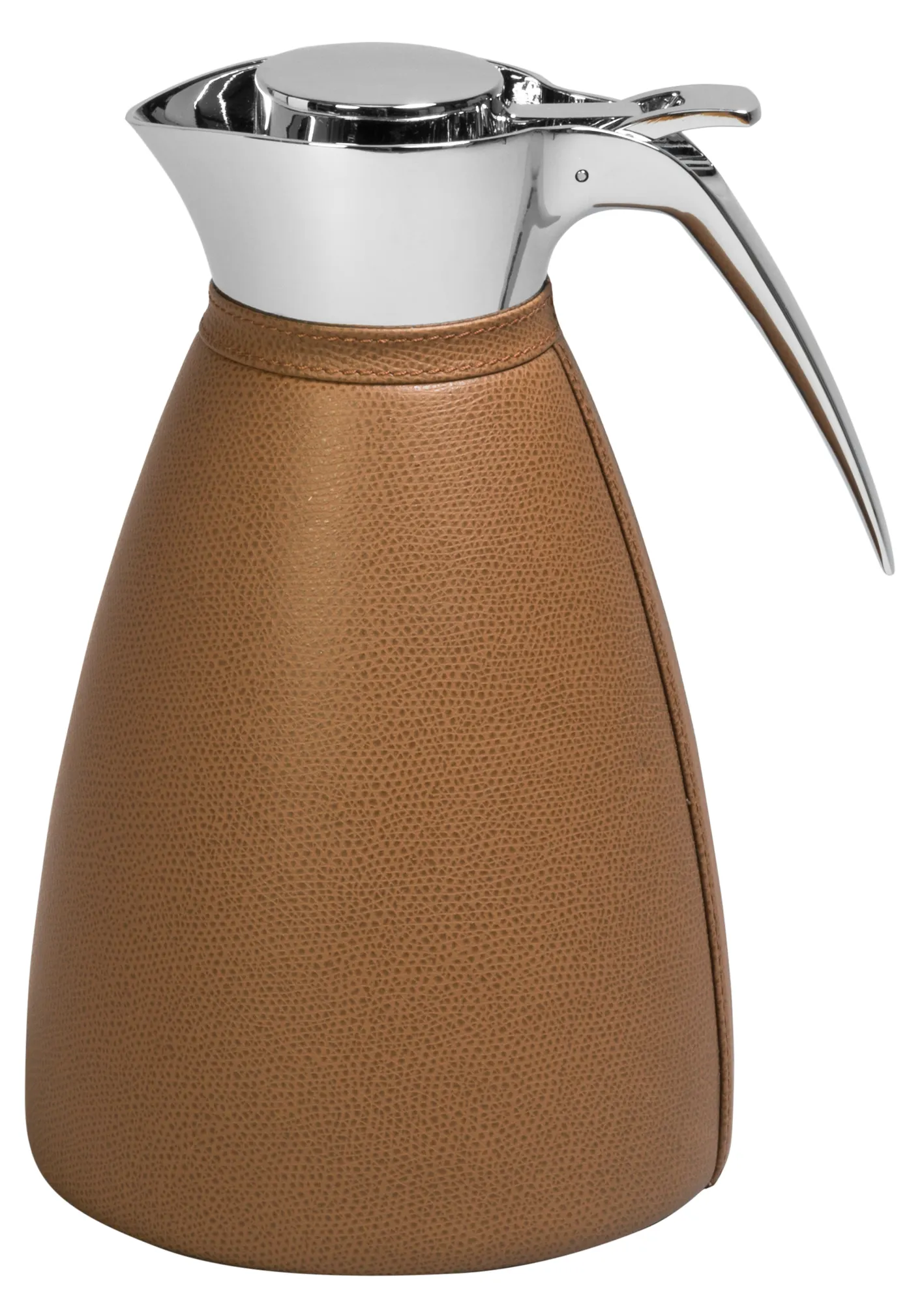 Partially leather covered insulated stainless steel carafes with chrome-plated finish. Two-chamber structure able to maintain the liquid’s temperatures. Precise pouring thanks to the specially developed hinged lid with one-hand operation.