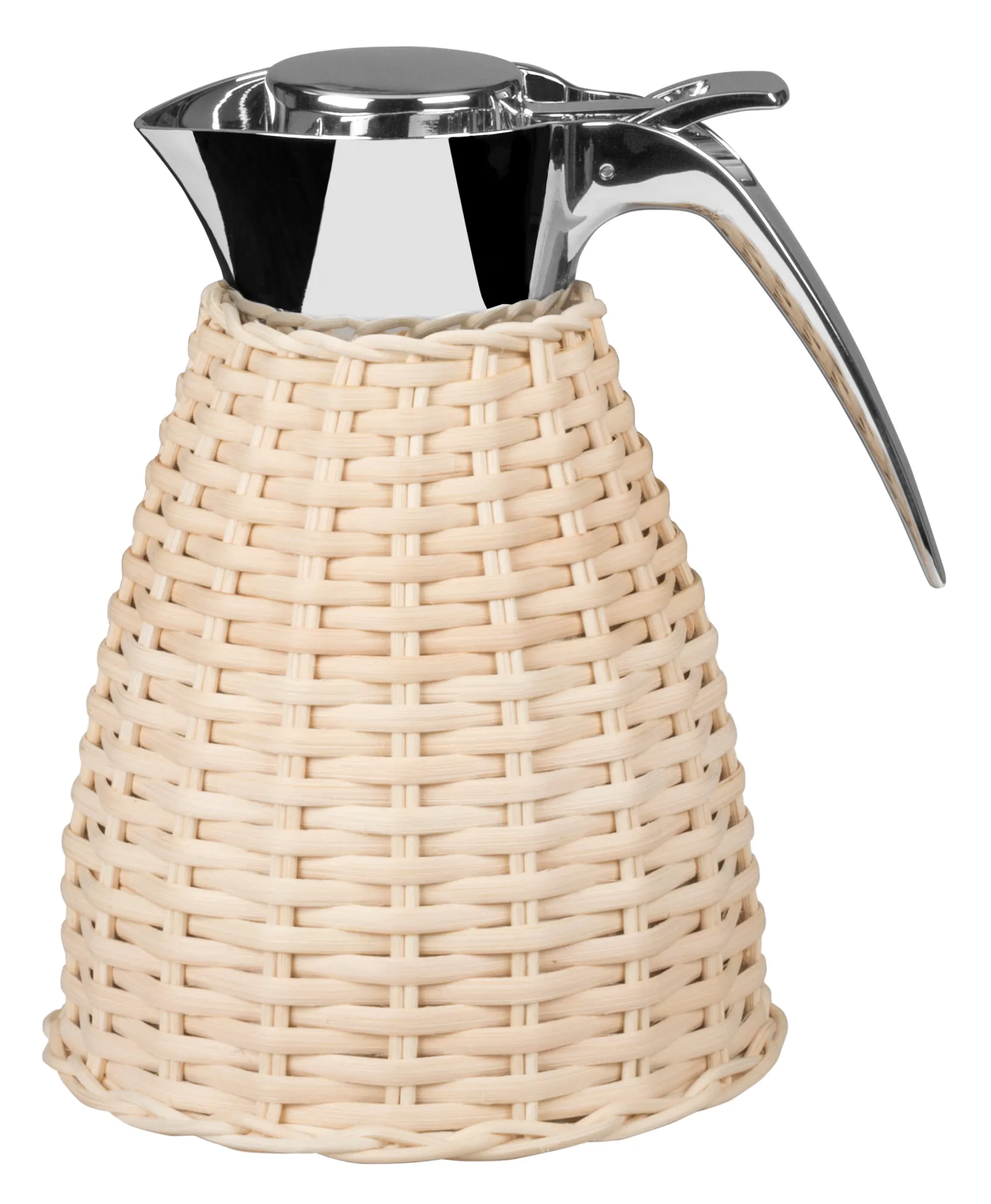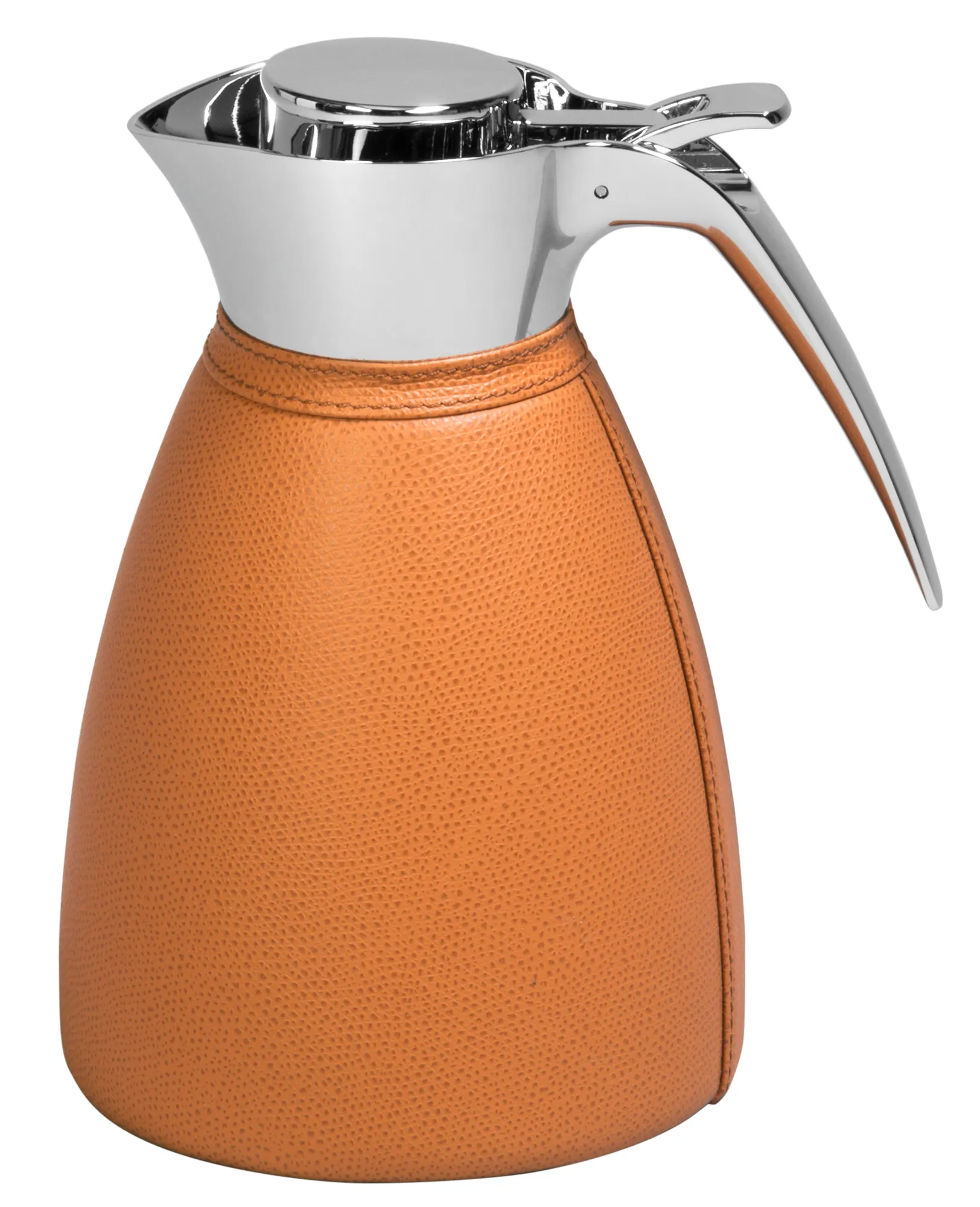 Partially leather covered insulated stainless steel carafes with chrome-plated finish. Two-chamber structure able to maintain the liquids temperatures. Precise pouring thanks to the specially developed hinged lid with one-hand operation.