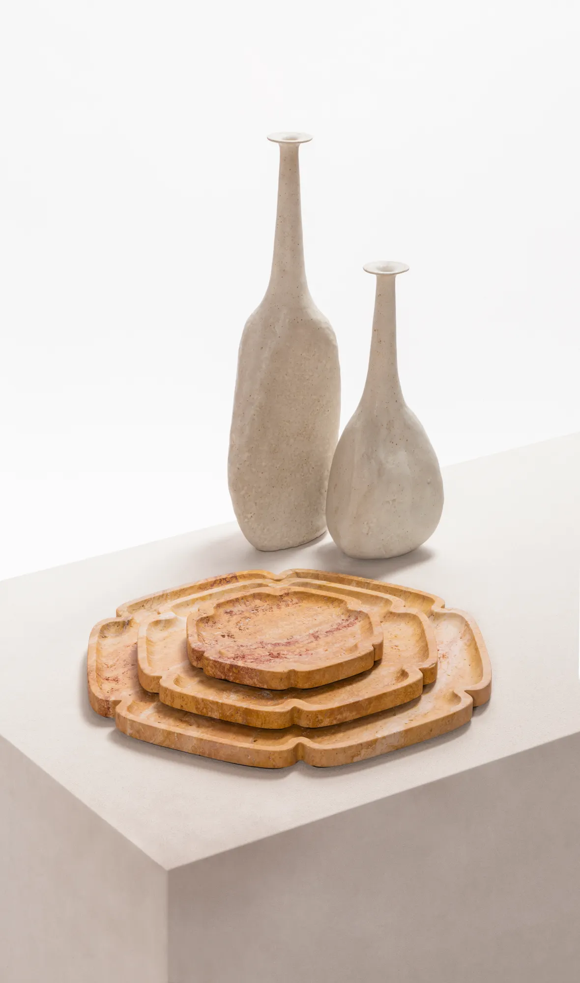 Vitruvio is a collection of travertine valet trays available in a variety of sizes, shapes and colors, which takes inspiration from Classical architectural models and translates them in a graphic contemporary visual language. Being characterized by minimal lines, forms range from rigorously geometric to smoothly curved. Custom sizes available on request.