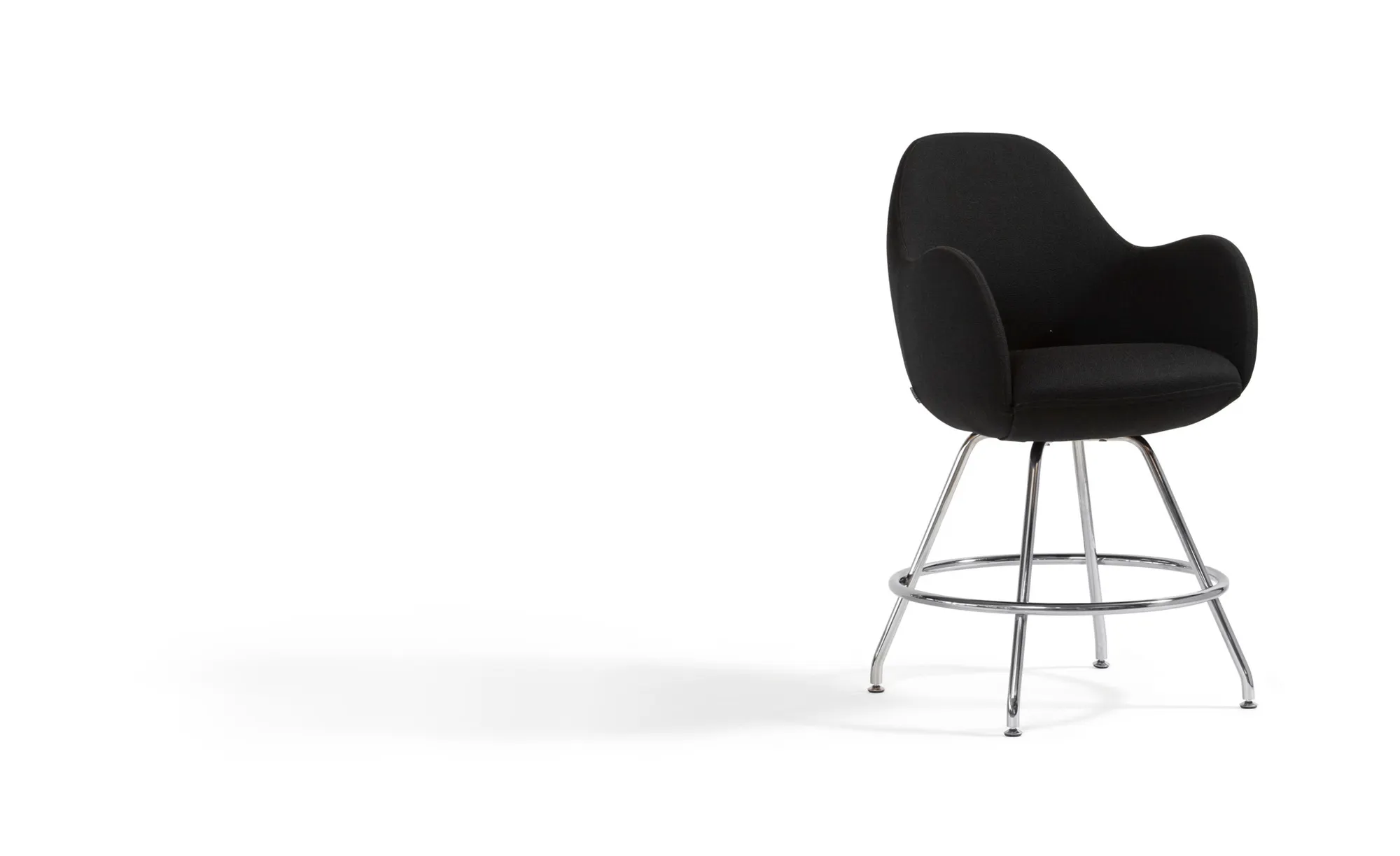 Elevate Wilmer's already famous comfort to new heights with Wilmer Bar - a brand-new armchair. With Wilmer Bar, the latest addition to the growing Wilmer family, we asked ourselves why world-class comfort often stays so close to the ground. Bring all the comfortable benefits of the Wilmer armchair up to the bar table and take a seat. ELEVATED COMFORT The Wilmer family offers an iconic and warm expression in conference environments, at the office as a stand-alone workplace, in the reading corner of your favorite hotel and now around the buzzing dining table and bar counter, high and low. Wilmer is an armchair, chair, workplace or bar stool for modern life. The family started as an unparalleled armchair with soft shapes and high functionality. The differences between then, now, later, work and leisure, here and there have been blurred and "multitasking" is just a word in the way we live. Together with Stefan Borselius we removed everything down to the smallest components, like right and left halves of the brain. One half is analytical, calculating, thinking – while the other is active, creative and passionate. From that point, our smallest common denominator, we felt we could come closer to the “multitasking generation” and create a hybrid model for their needs, now also in bar-height.