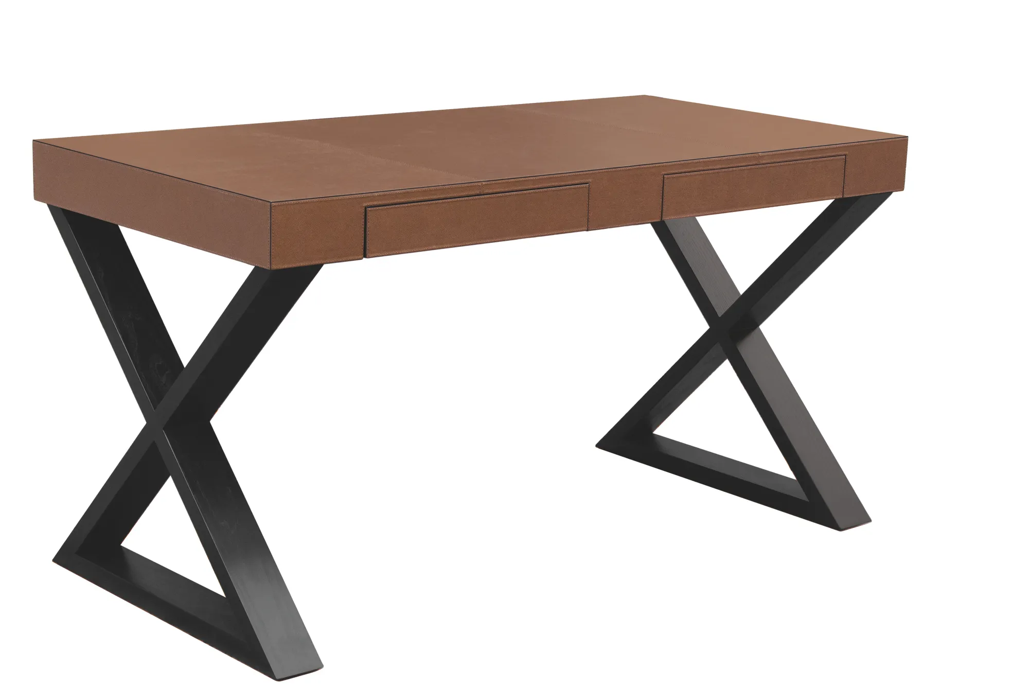 Leather covered solid wood structure. Oak legs with wenge finish. Drawers with suede lining and bronze handles. Different finishes available on request. Removable legs. Leather covered plywood top. Two drawers with removable suede lining. Custom sizes available on request. Wood finishes available: natural / walnut / wenge.